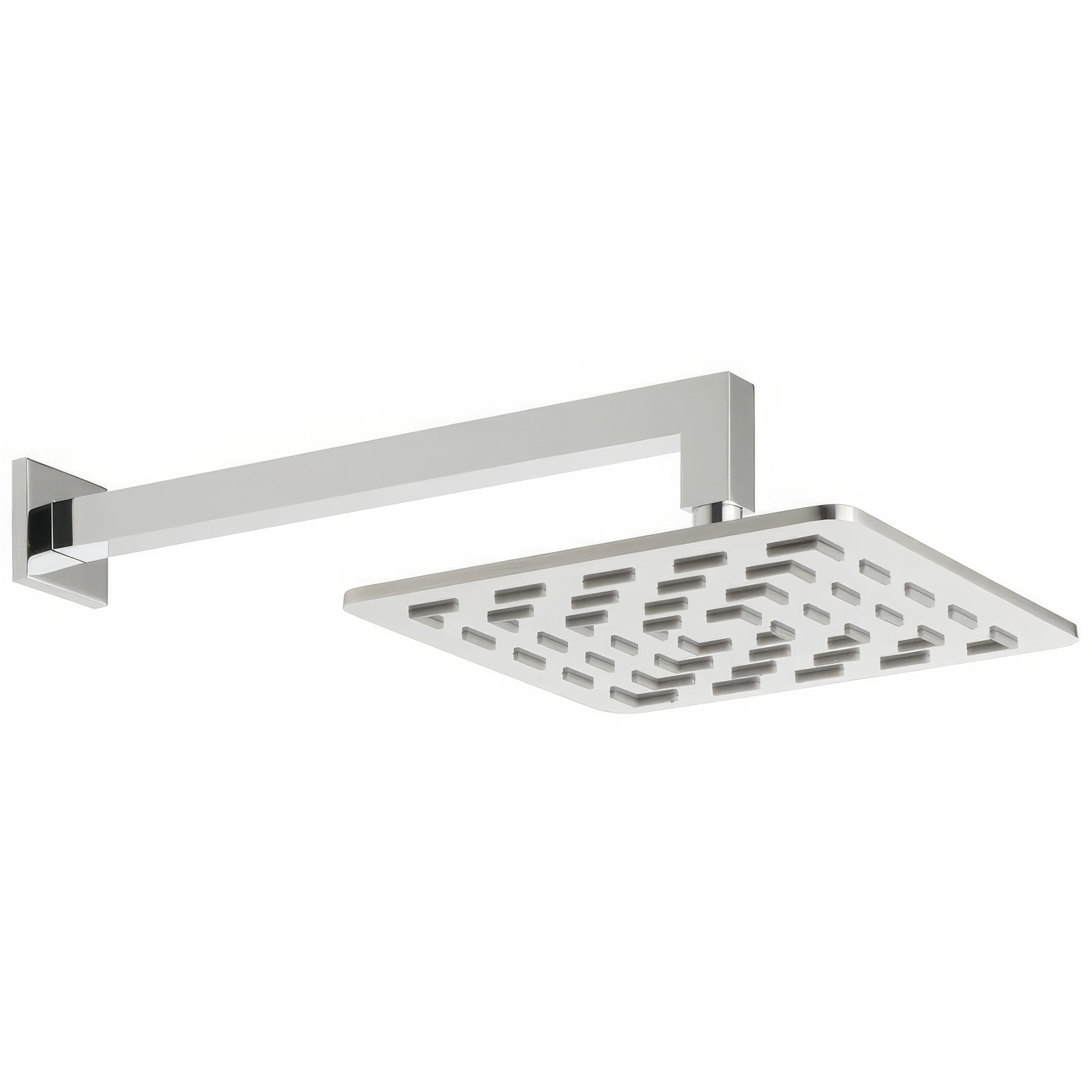 Vado Geometry Fixed Chrome Shower Head with Arm 250 x 250mm - Single Spray Mode