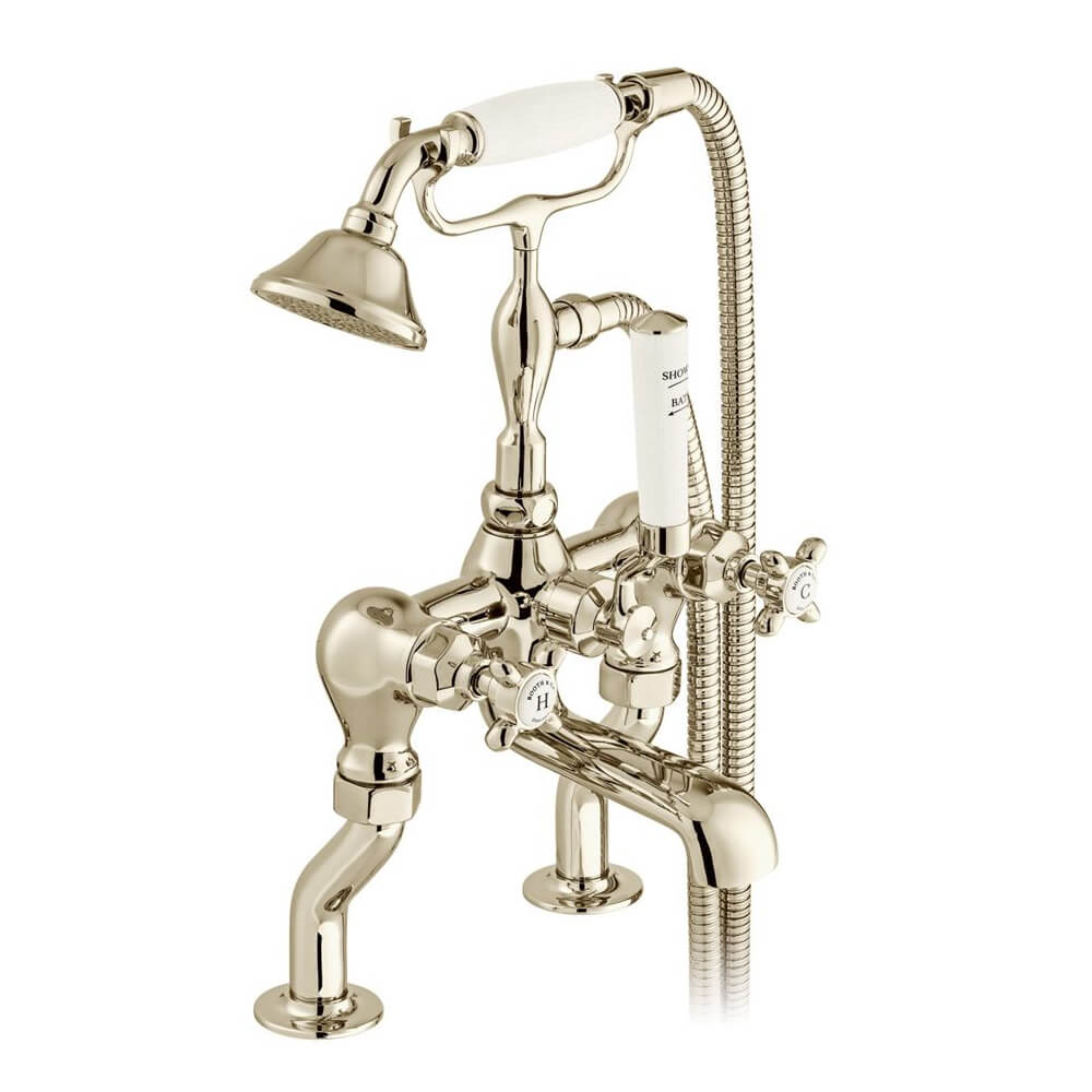 Vado Axbridge Traditional Bath Mixer Tap with Shower Handset - Crosshead Handles - Deck Mounted