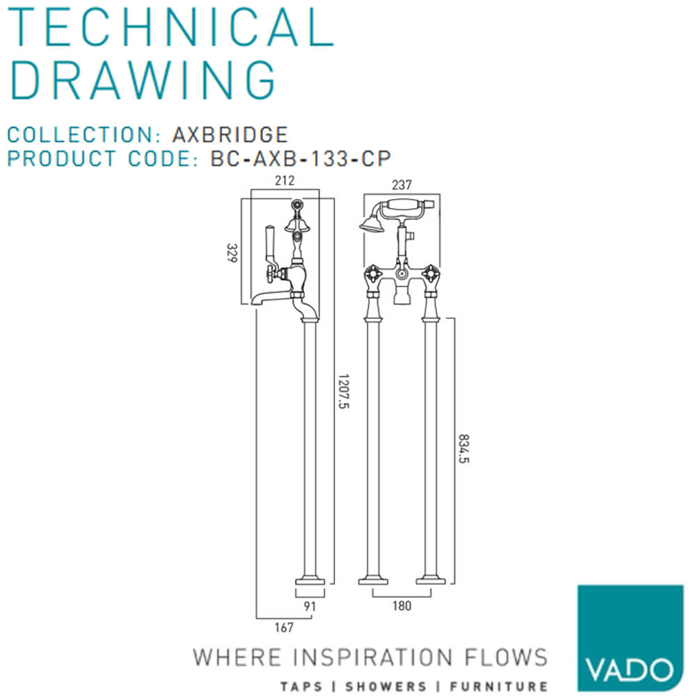 Vado Axbridge Traditional Freestanding Bath Shower Mixer Tap With Kit - Crosshead Handle