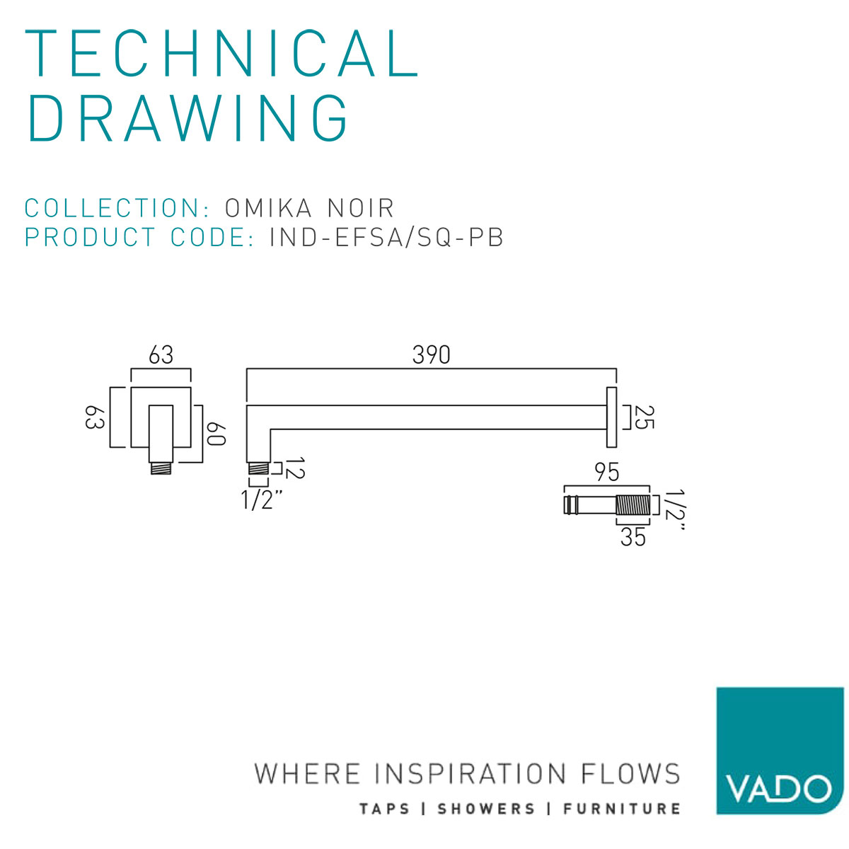 Vado Individual Mix2 Wall Mounted Polished Black Shower Arm - Projection 390mm