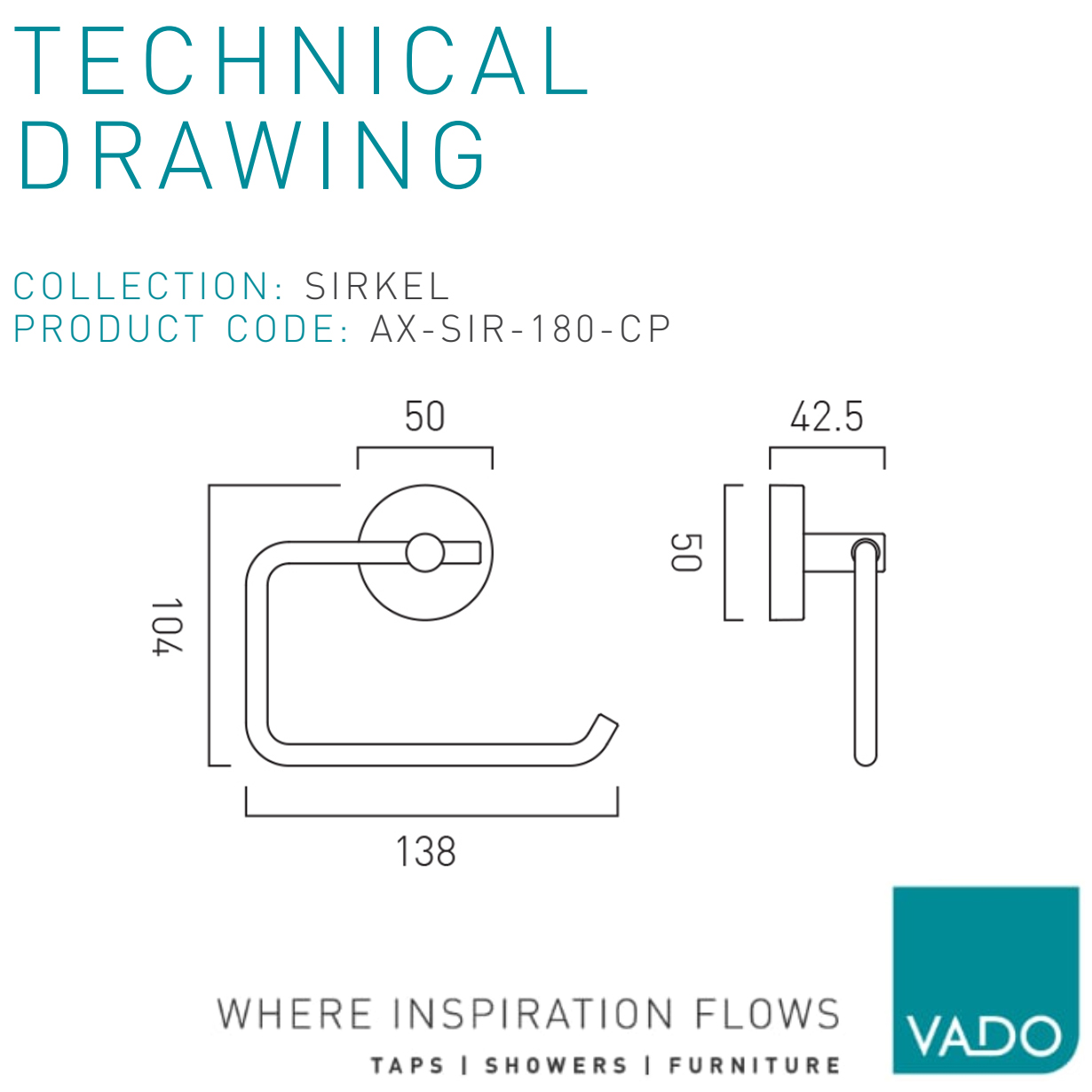 Vado Axces Sirkel Chrome Toilet Paper Holder.