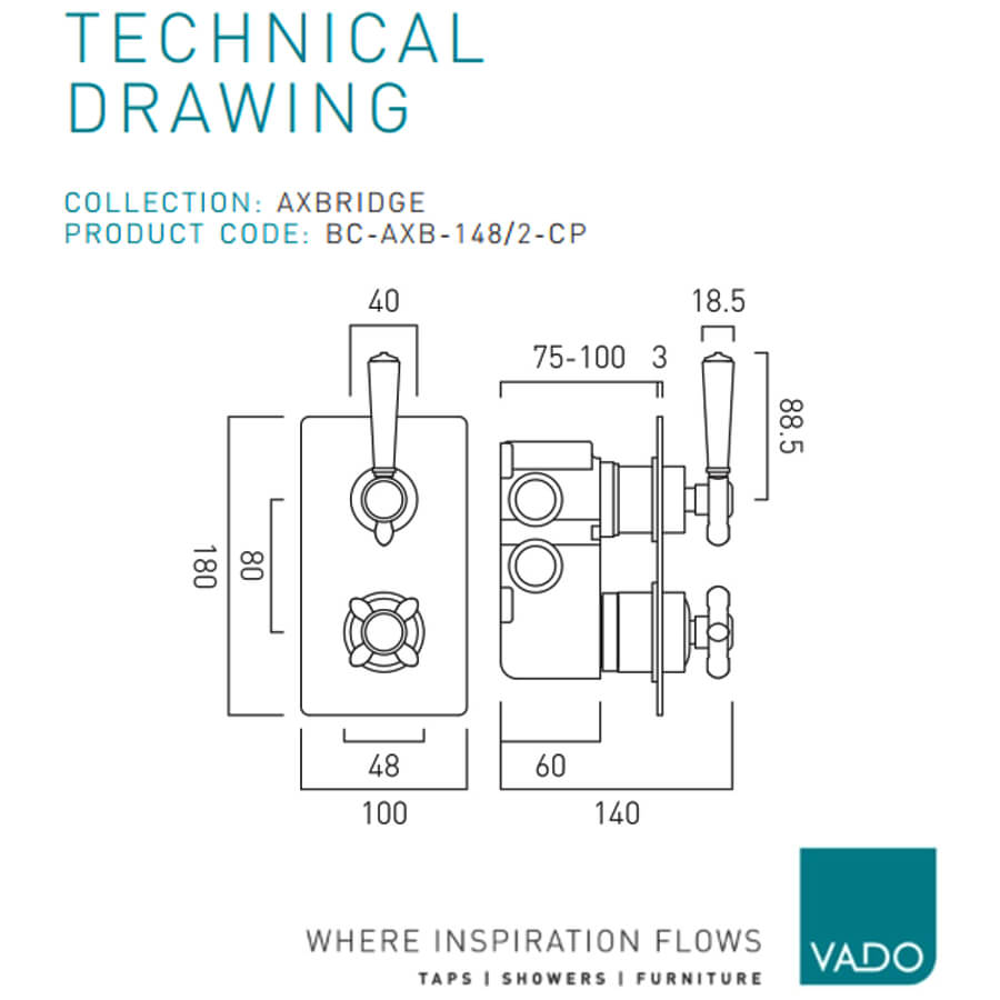 Vado Axbridge Traditional Concealed Rectangular Thermostatic Shower Valve - 2 Controls