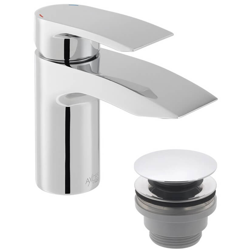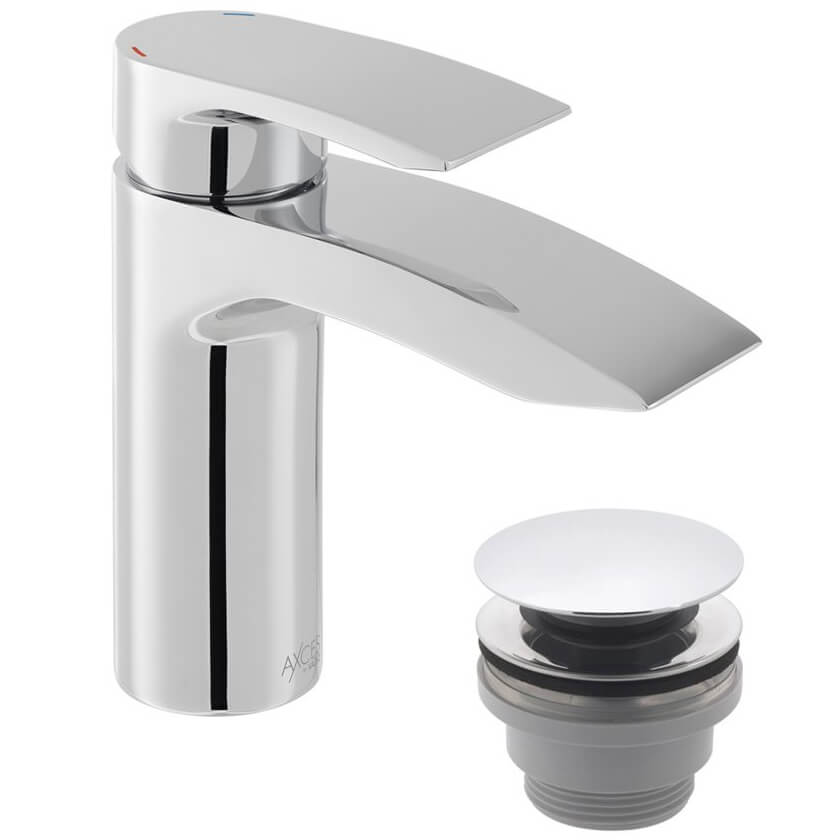 Vado Rowe Chrome Basin Mixer Tap with Push Basin Waste - Curved Lever Handle