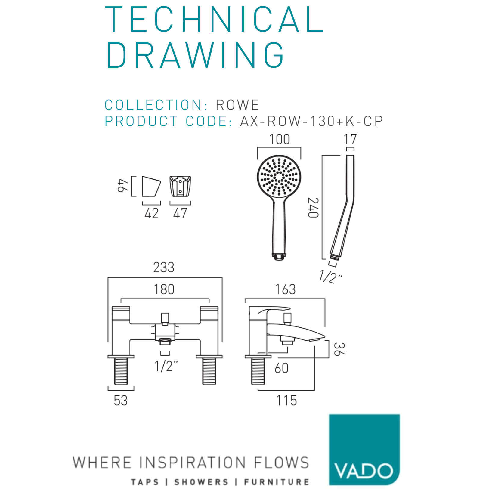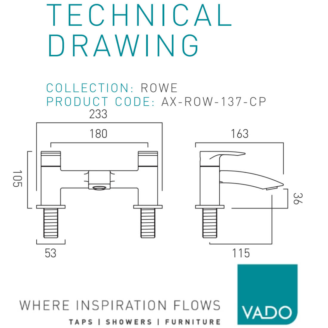 Vado Rowe Chrome Bridge Bath Mixer Tap with Curved Spout and Handles