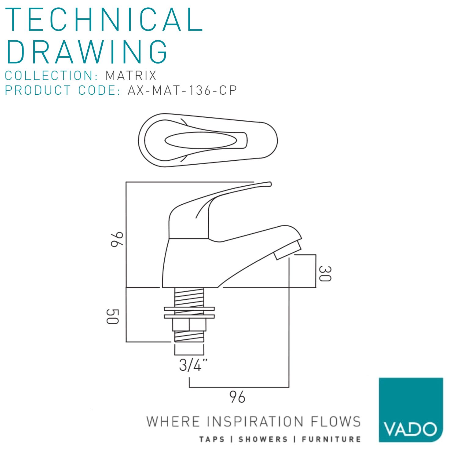 • Centre of the Inlet to the Centre of the Outlet: 96mm (9.6cm)