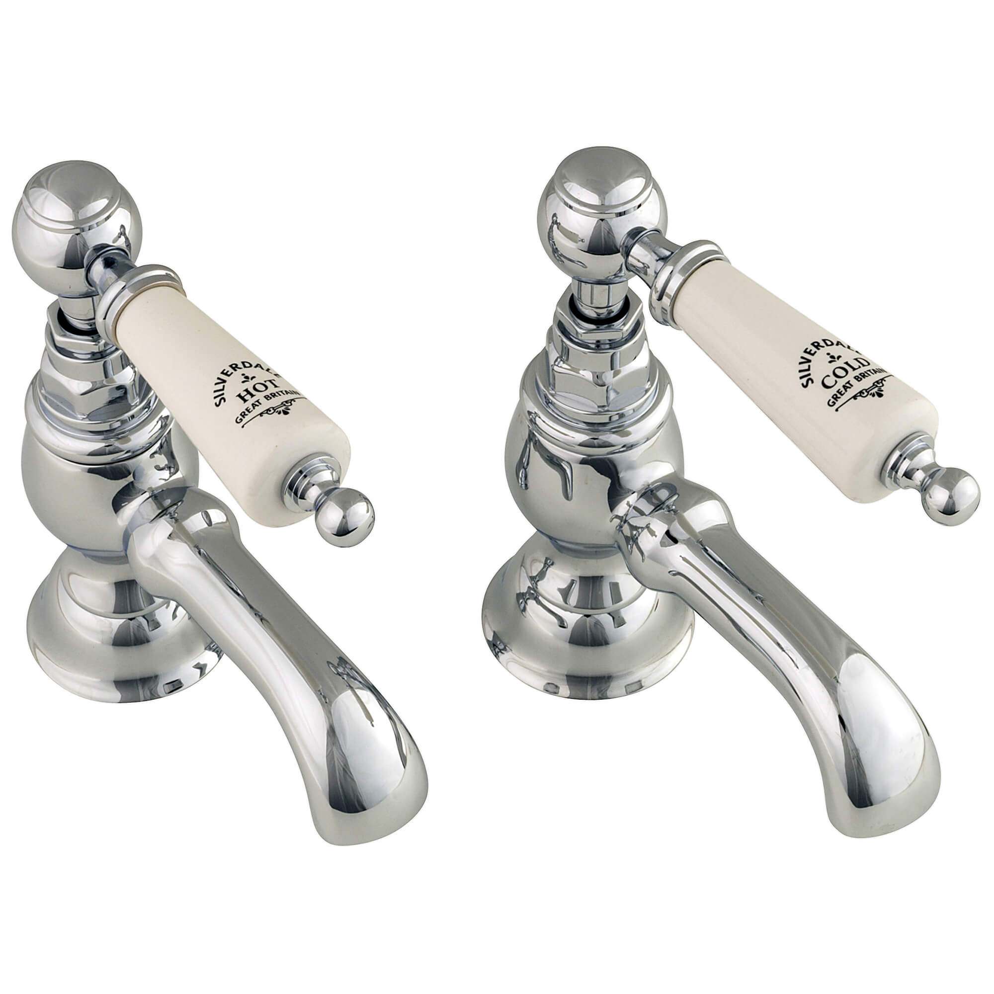 Silverdale Berkeley Pair Of Traditional Bath Pillar Taps with Curved Spout - Lever Handles