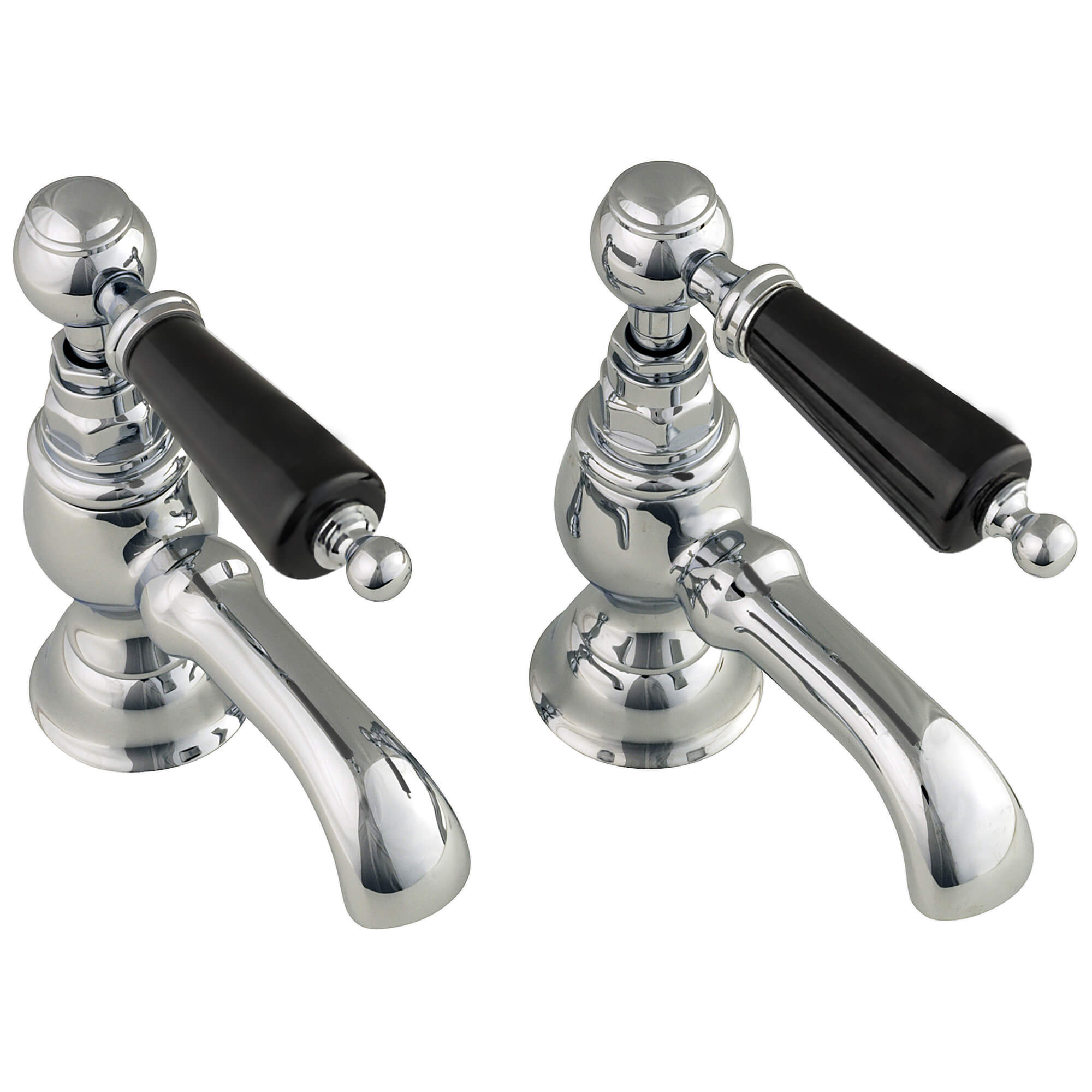 Silverdale Berkeley Pair Of Traditional Bath Pillar Taps with Curved Spout - Lever Handles.