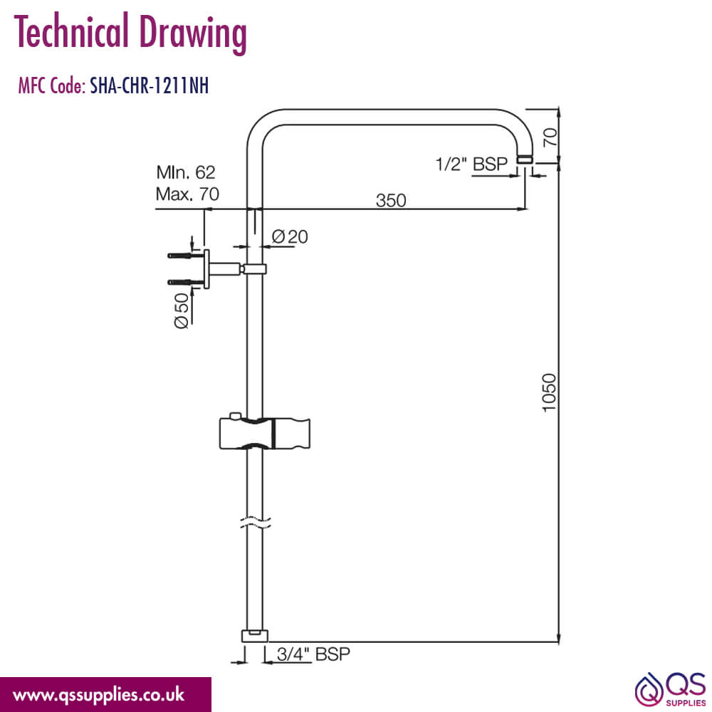 • Includes: Exposed Shower Pipe for Bath and Shower Mixer, Sliding Holder for Hand Shower