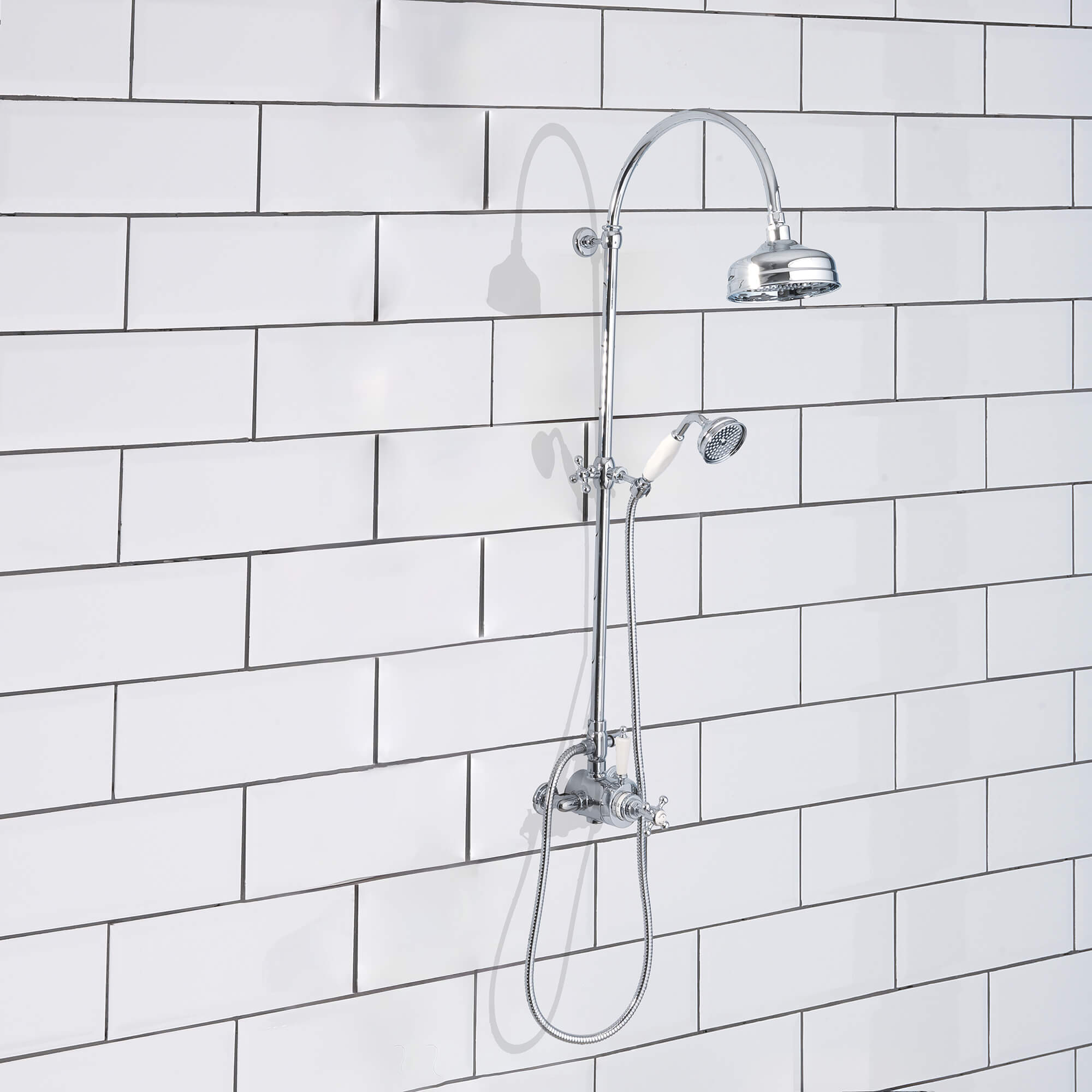 Silverdale Traditional Exposed Thermostatic Valve with Slide Rail - Overhead Shower and Handset.