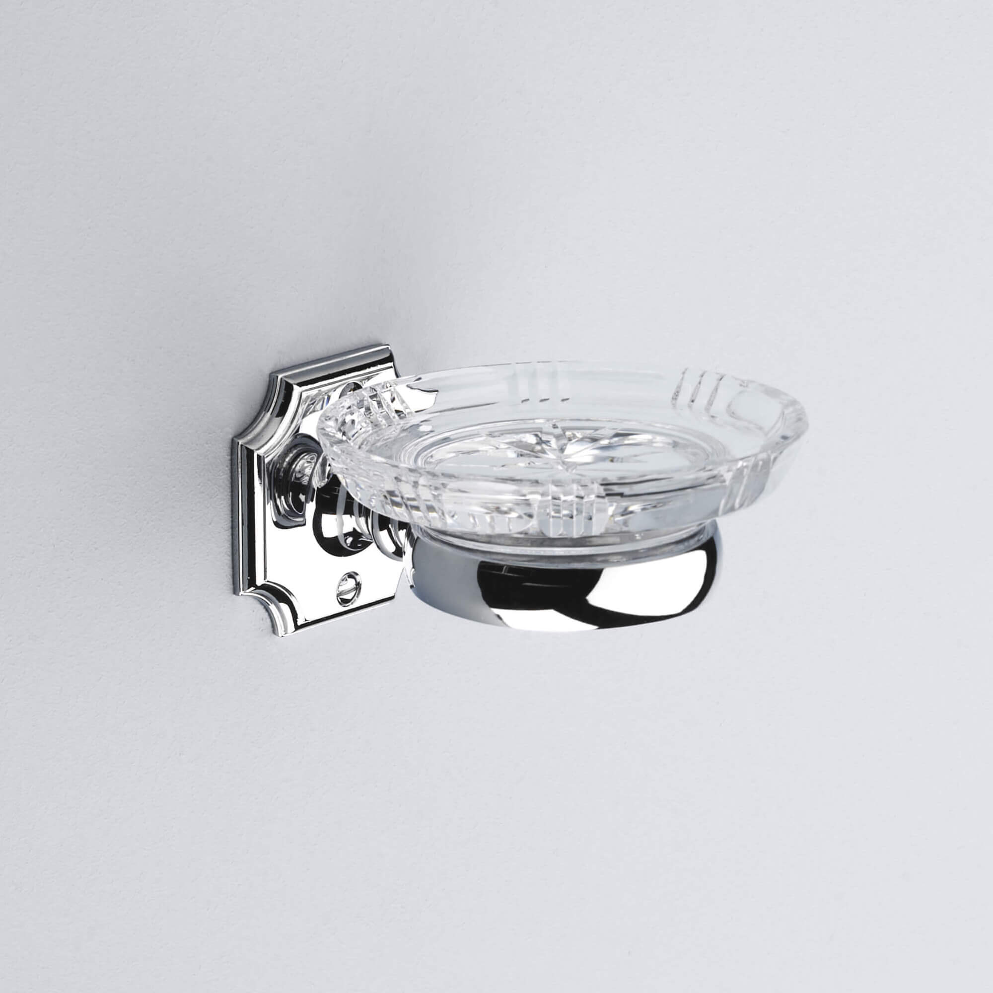 Silverdale Victorian Wall-Mounted Round Crystal Soap Dish with Holder