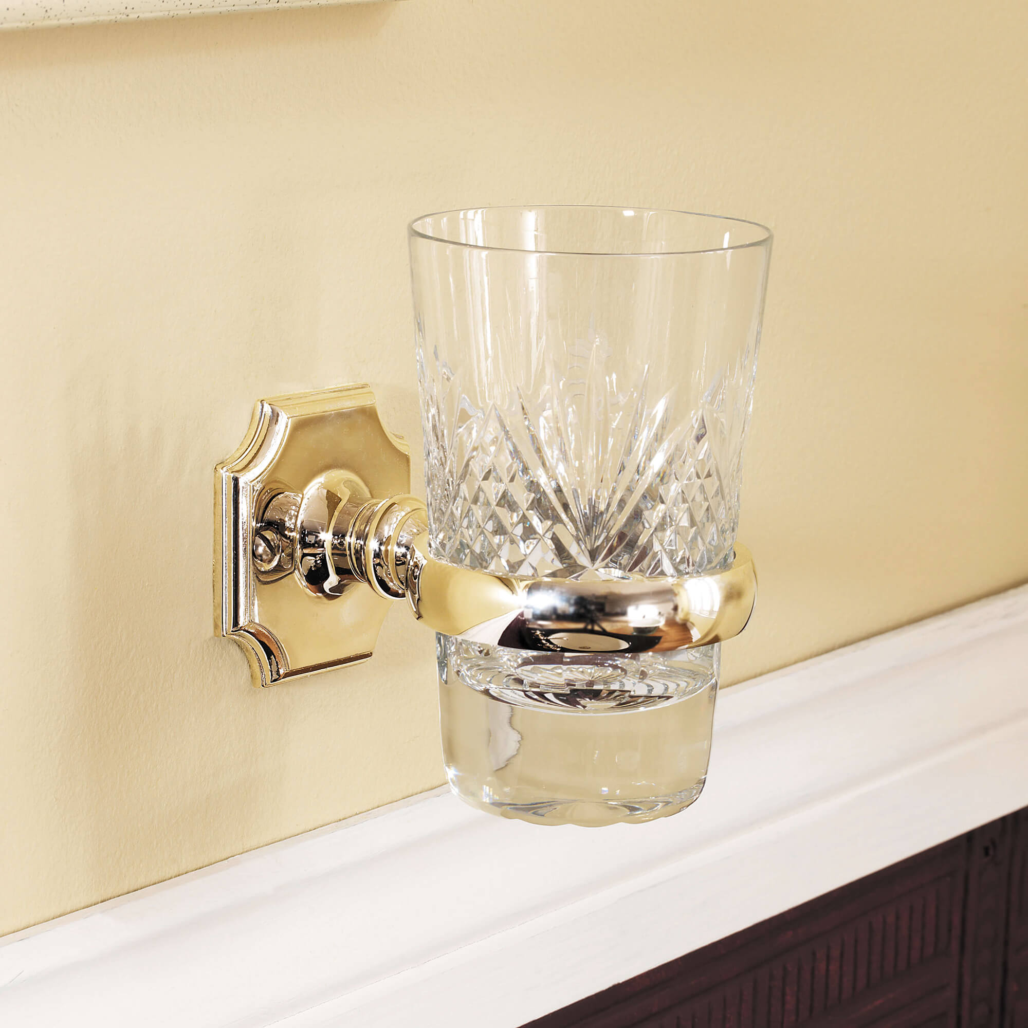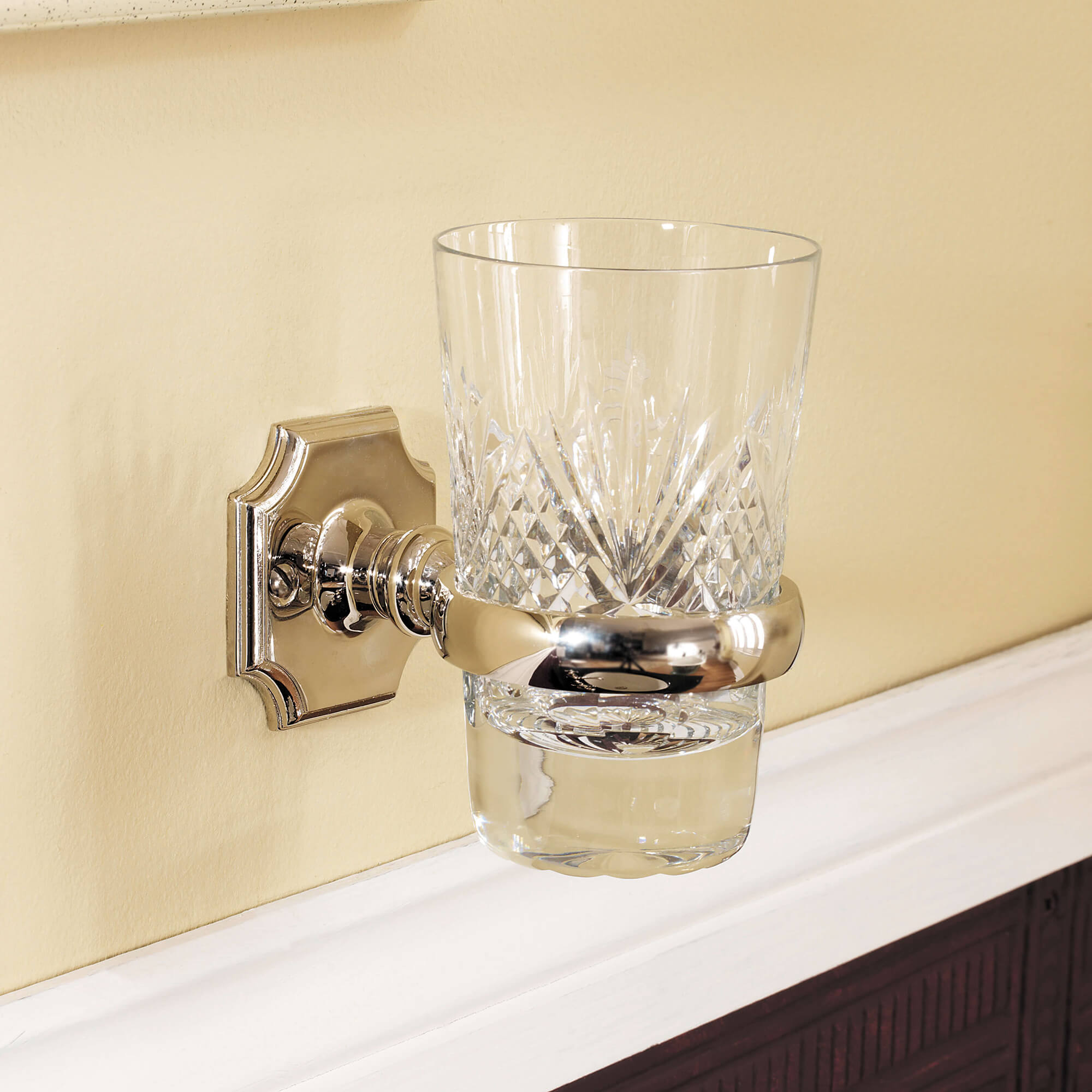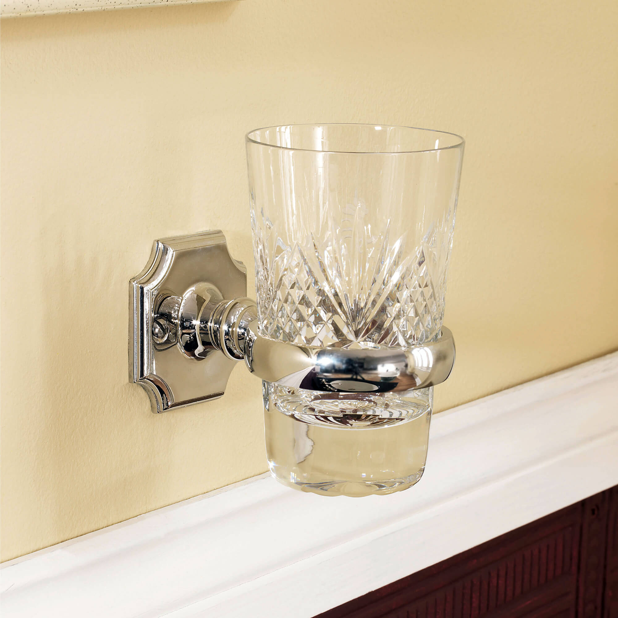 Silverdale Victorian Wall Mounted Round Tumbler Holder with Crystal Glass.
