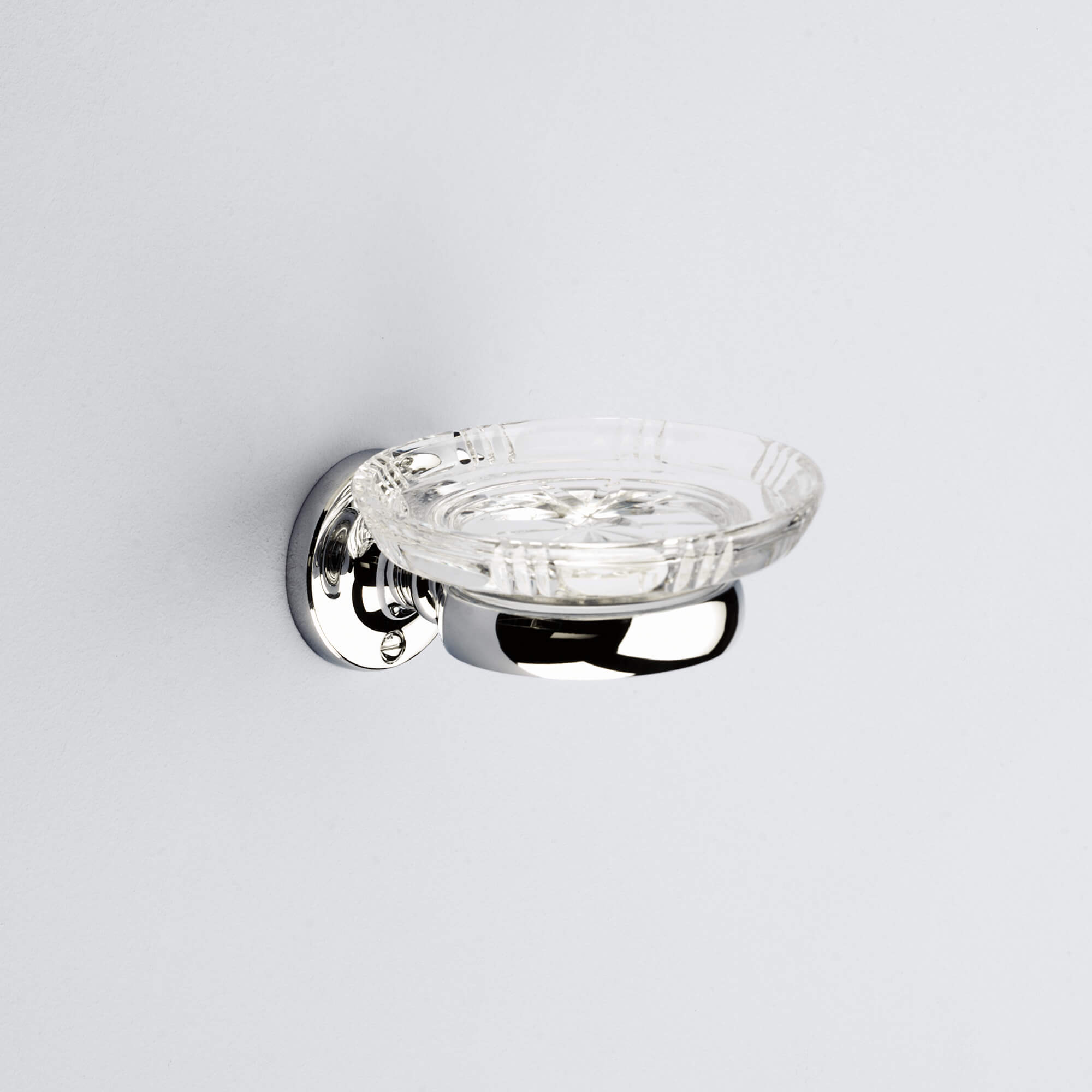 Silverdale Berkeley Wall-Mounted Round Crystal Soap Dish with Chrome Holder