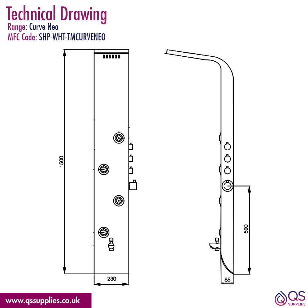 Jaquar Curve Neo White Aluminium 1500mm Shower Panel With Thermostat Mixer