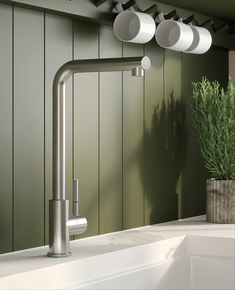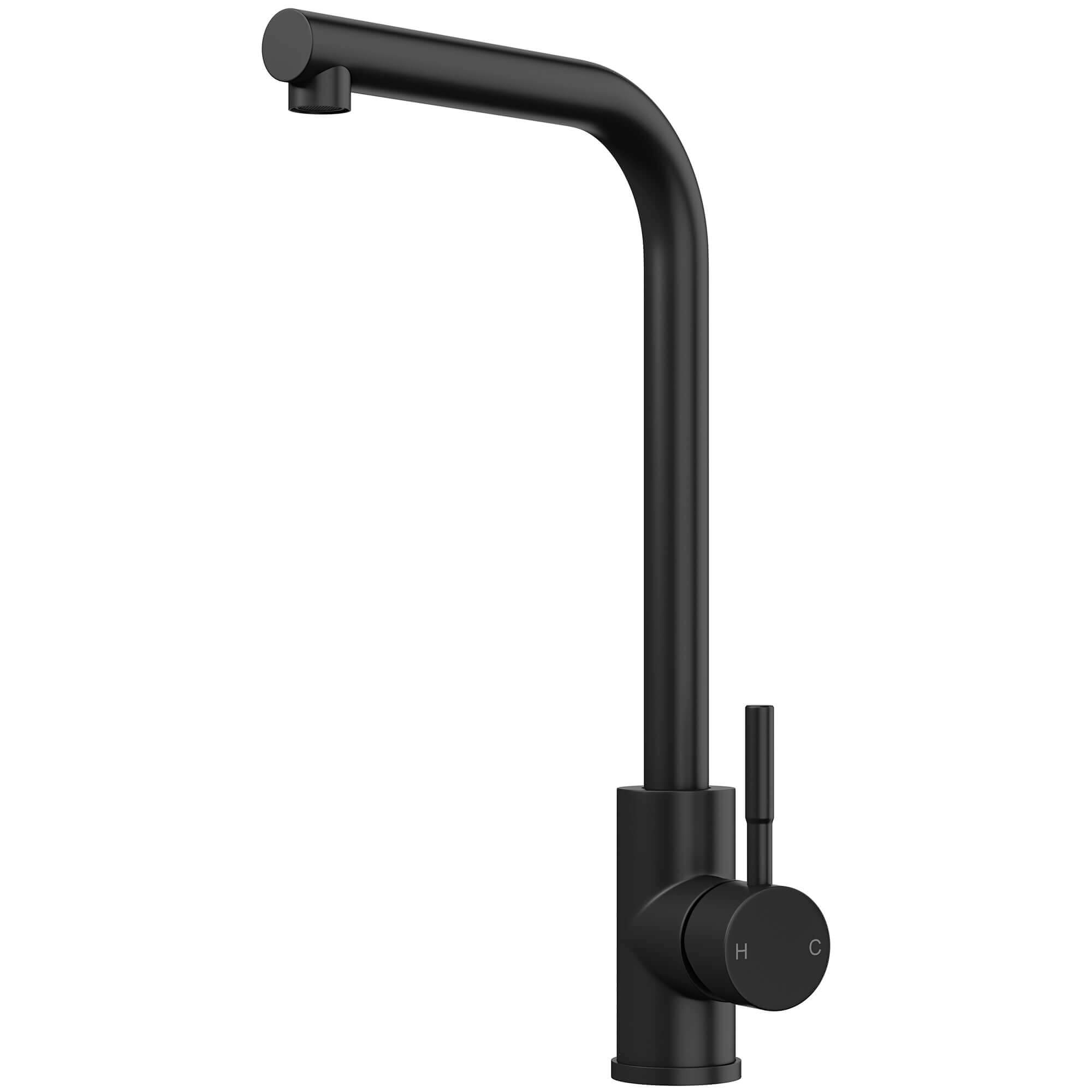 Nuie Top-Fix Vito Contemporary Kitchen Sink Mixer Tap with L-Neck Spout - Stick Handle.