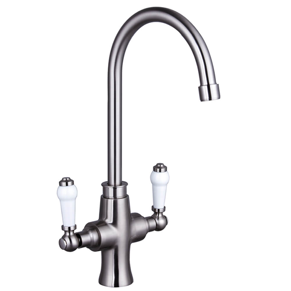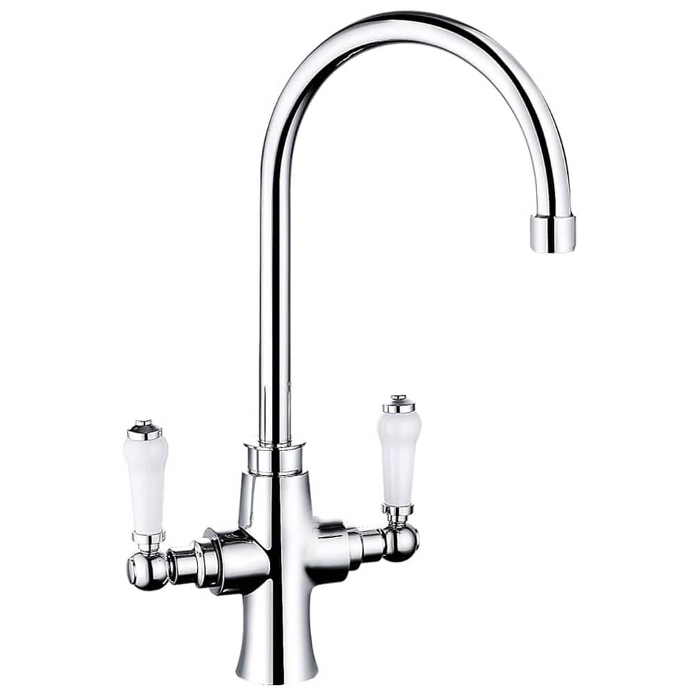 Nuie Sarani Traditional Kitchen Sink Mixer Tap with Swan Neck Spout - Ceramic Handles