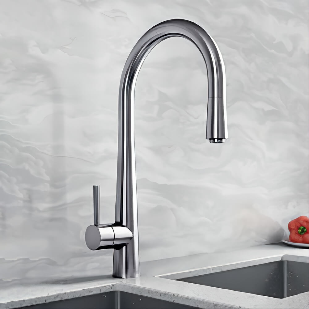 • Pull-Out Kitchen Mixer Tap with Curved Spout Design