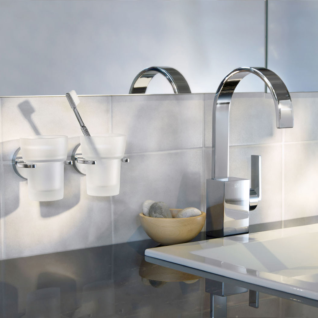 Smedbo House Brass Holder and Frosted Glass Tumbler - 98mm.