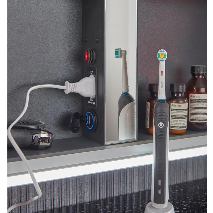 • Internal Two-Pin and USB Charging Sockets for Toothbrushes and Shavers