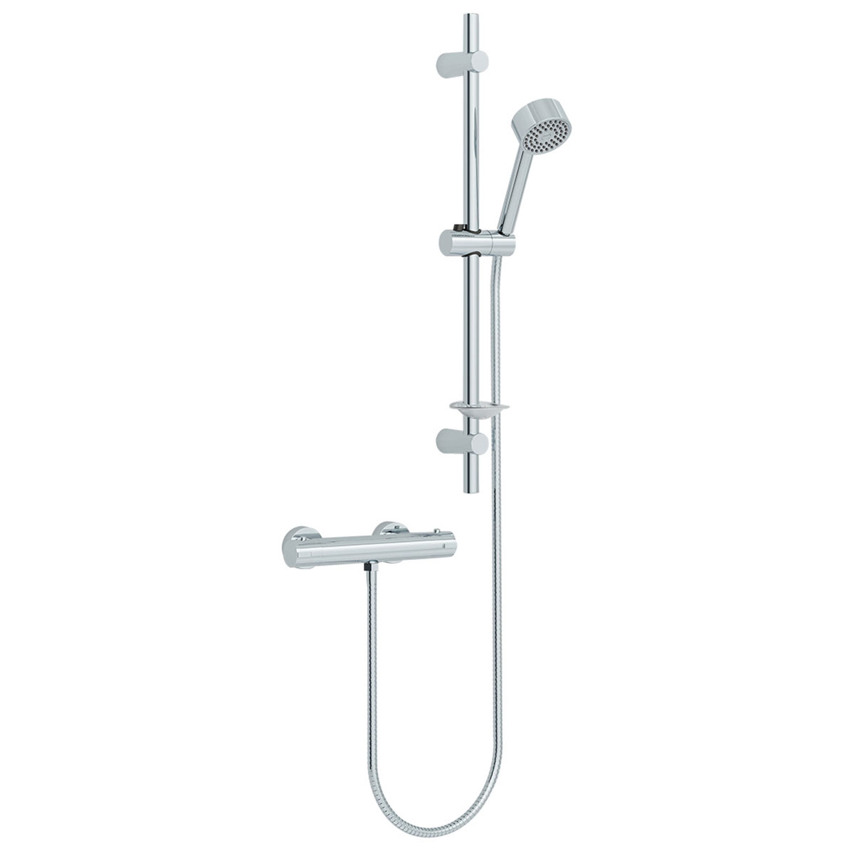 IMEX Arco Single Outlet Thermostatic Bar Valve with Slide Rail Kit and Handset.