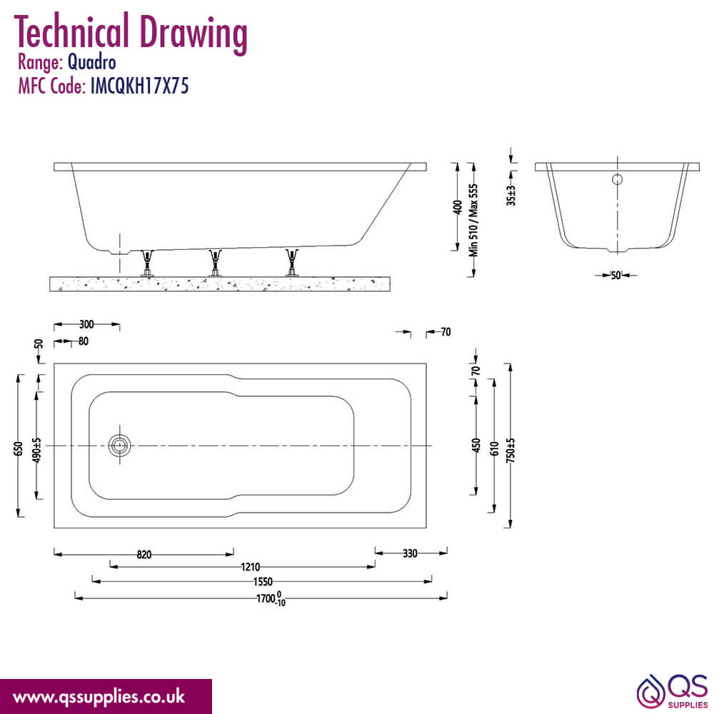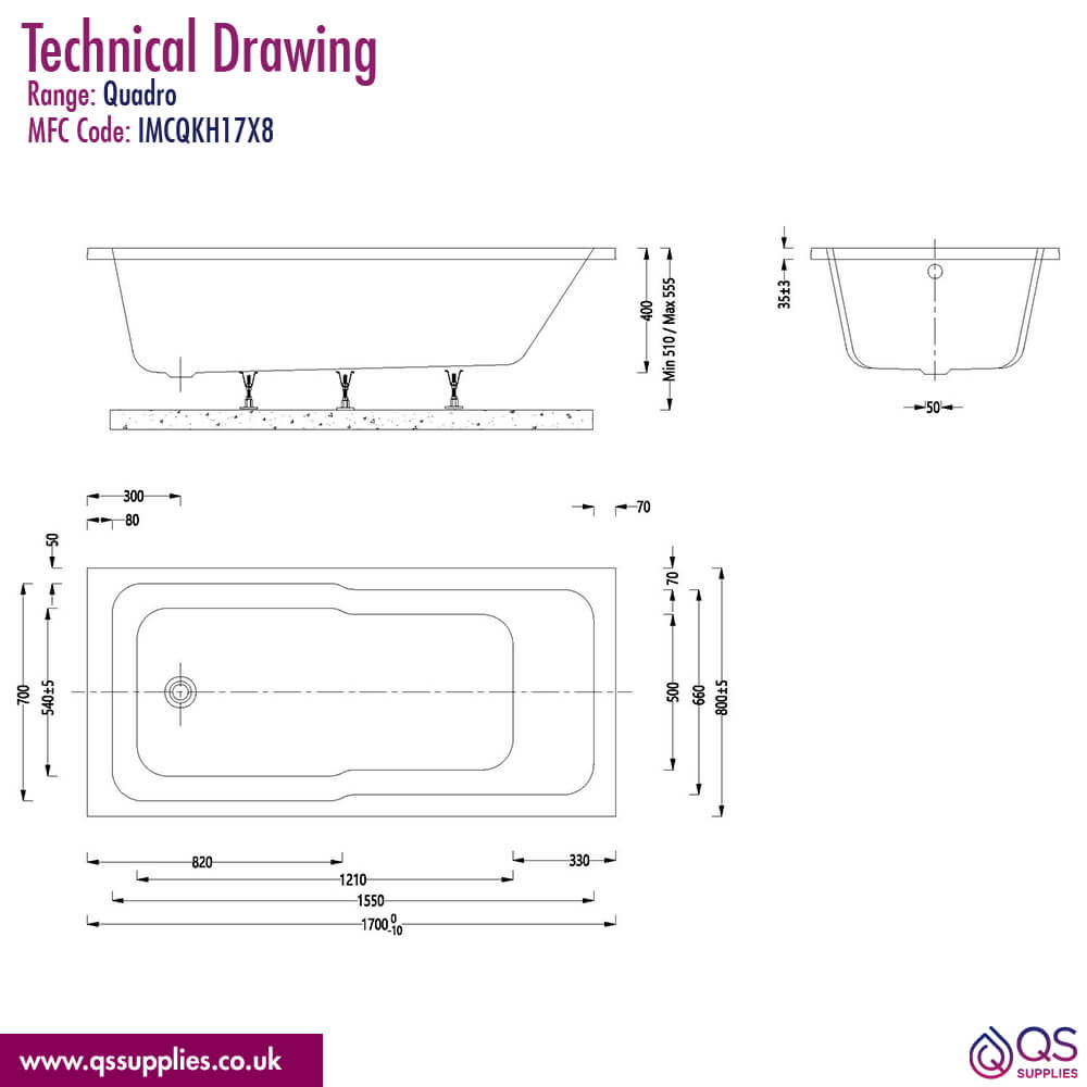 • Available in 2 Different Sizes: 1700 x 700mm, 1700 x 750mm, 1700 x 800mm