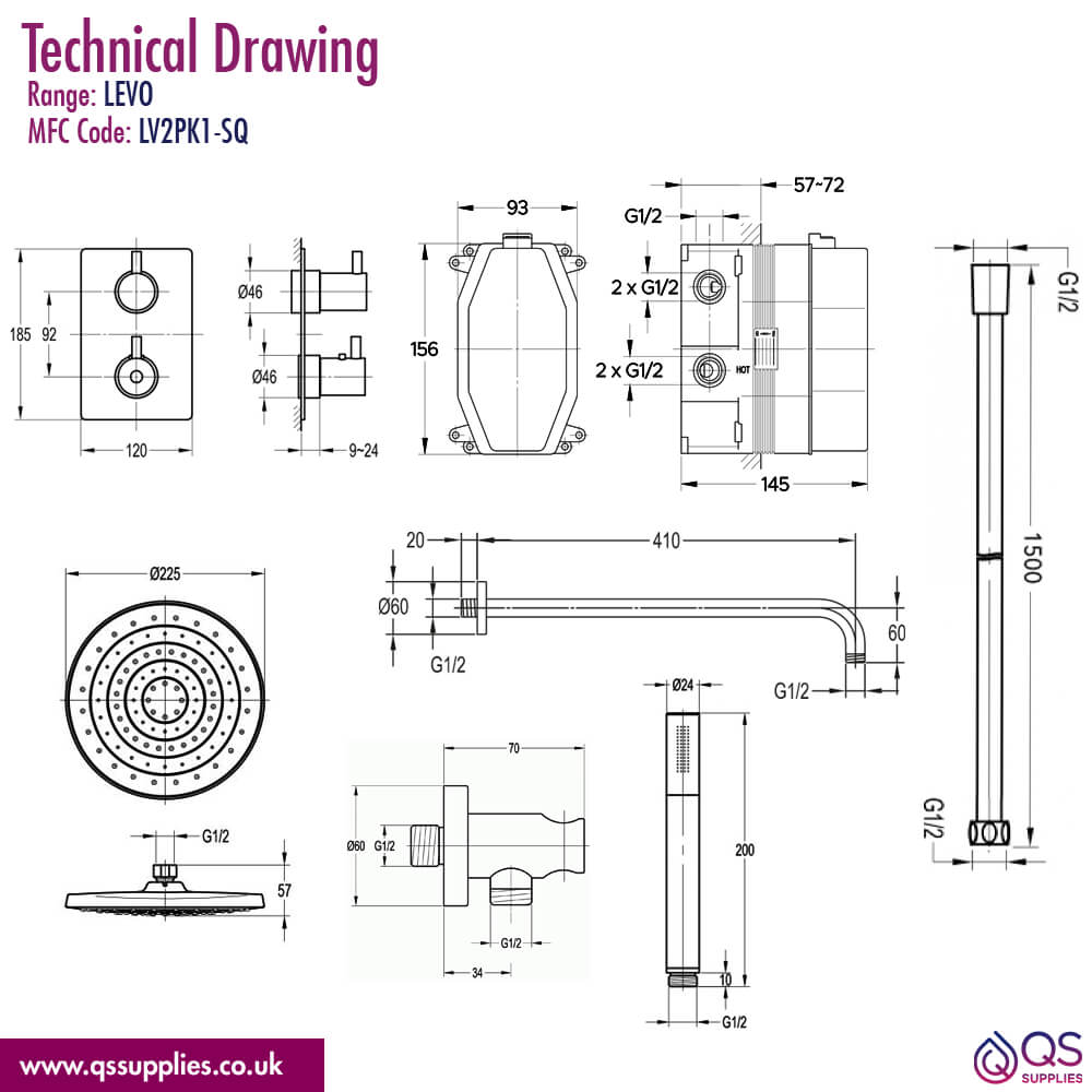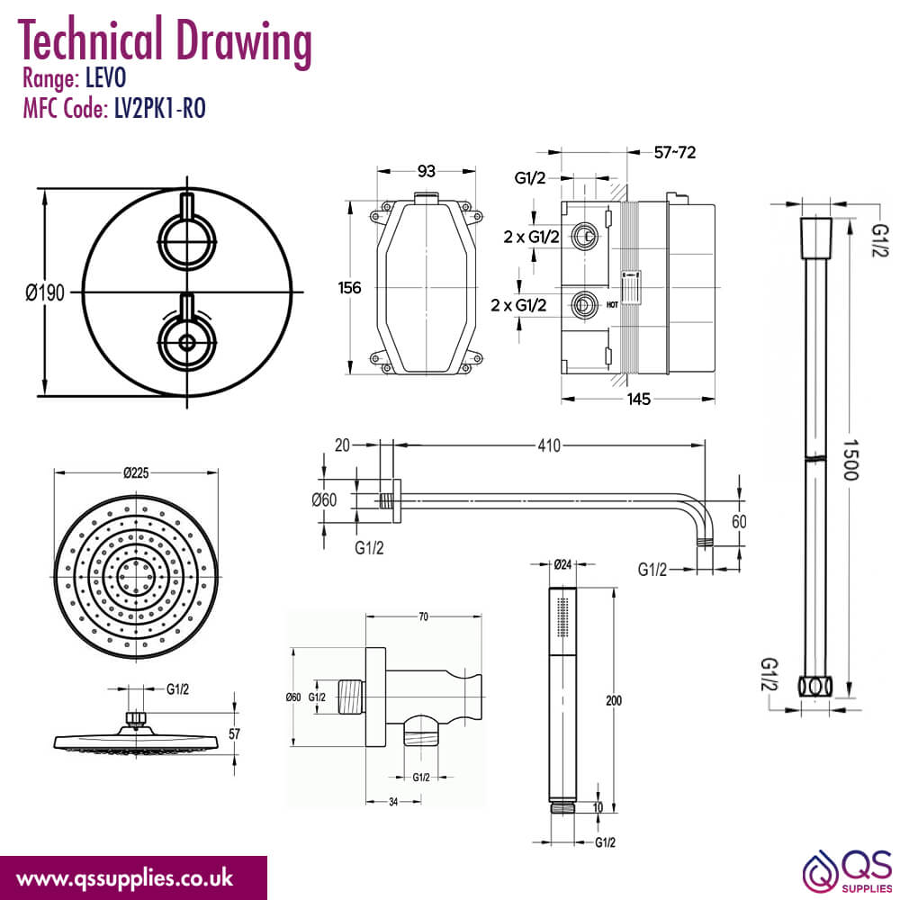 Flova Levo Thermostatic Concealed Mixer Valve with Shower Head and Handset.