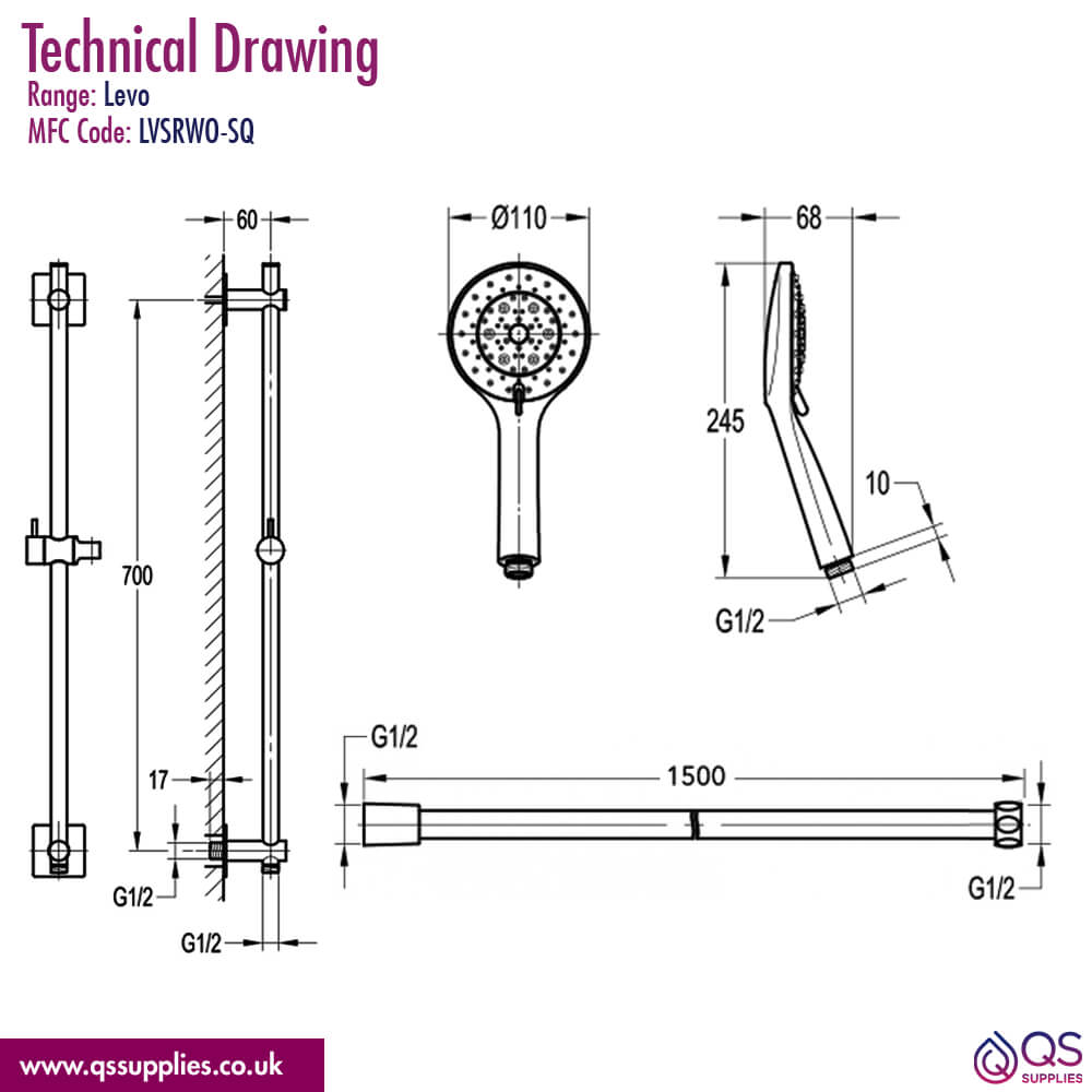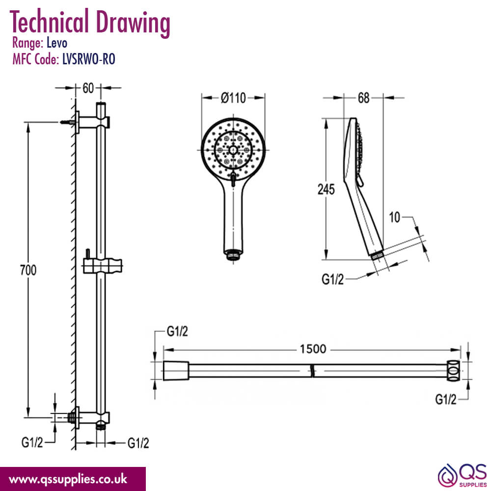 Flova Levo Diamond Chrome Shower Riser Rail Kit with Integral Wall Outlet
