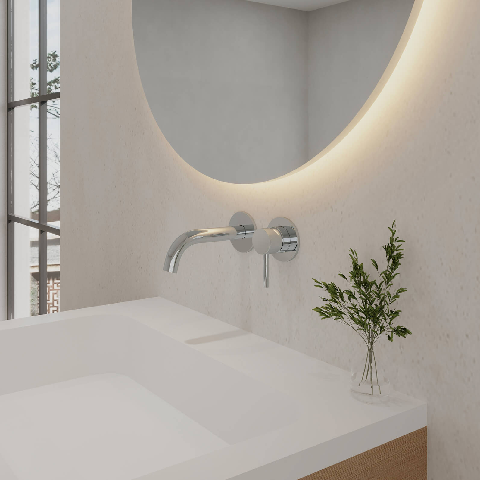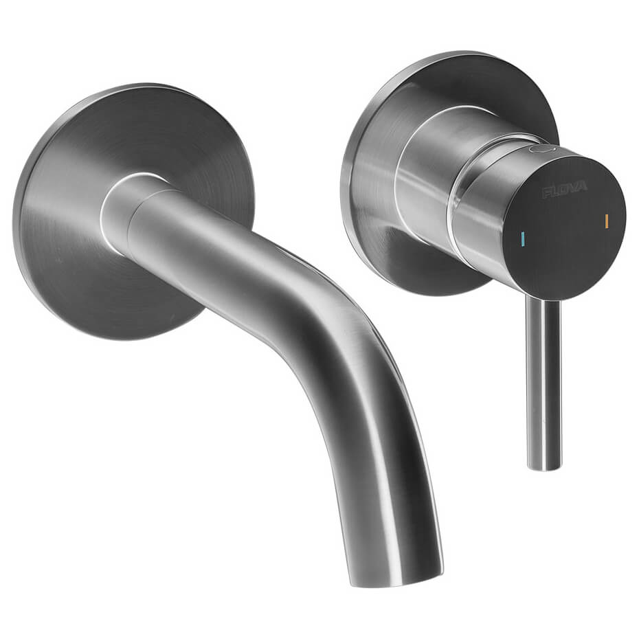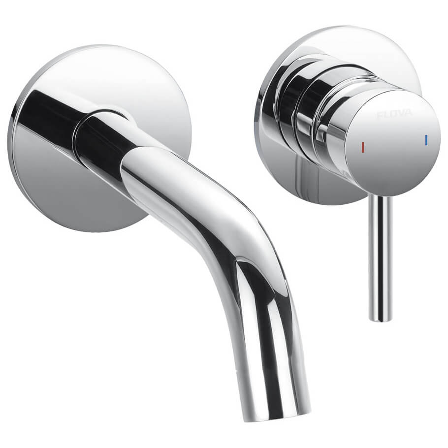 Flova Levo 2 Hole Contemporary Basin Mixer Tap with Curved Spout - Stick Handle.