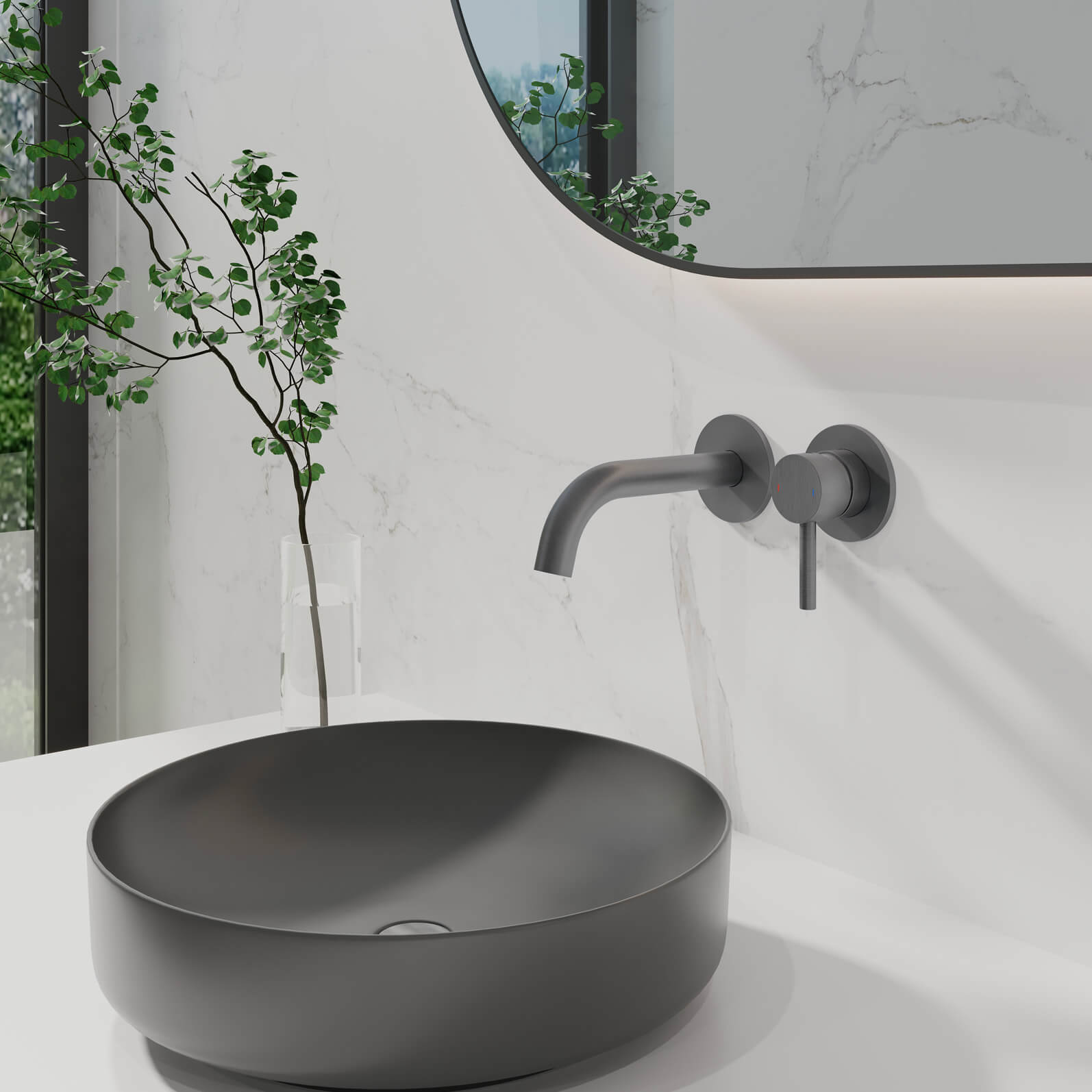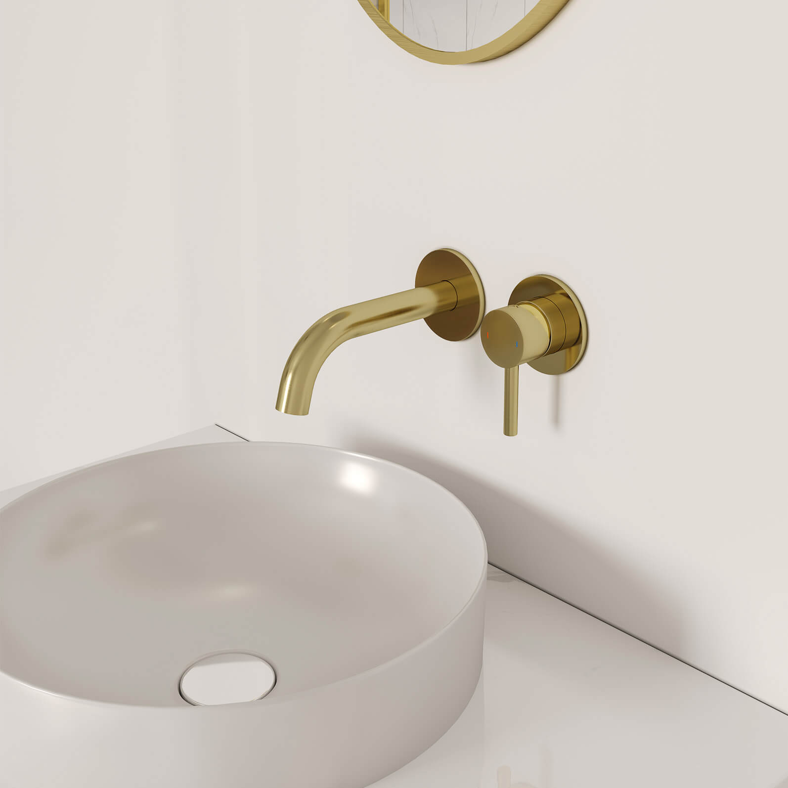 Flova Levo 2 Hole Contemporary Basin Mixer Tap with Curved Spout - Stick Handle