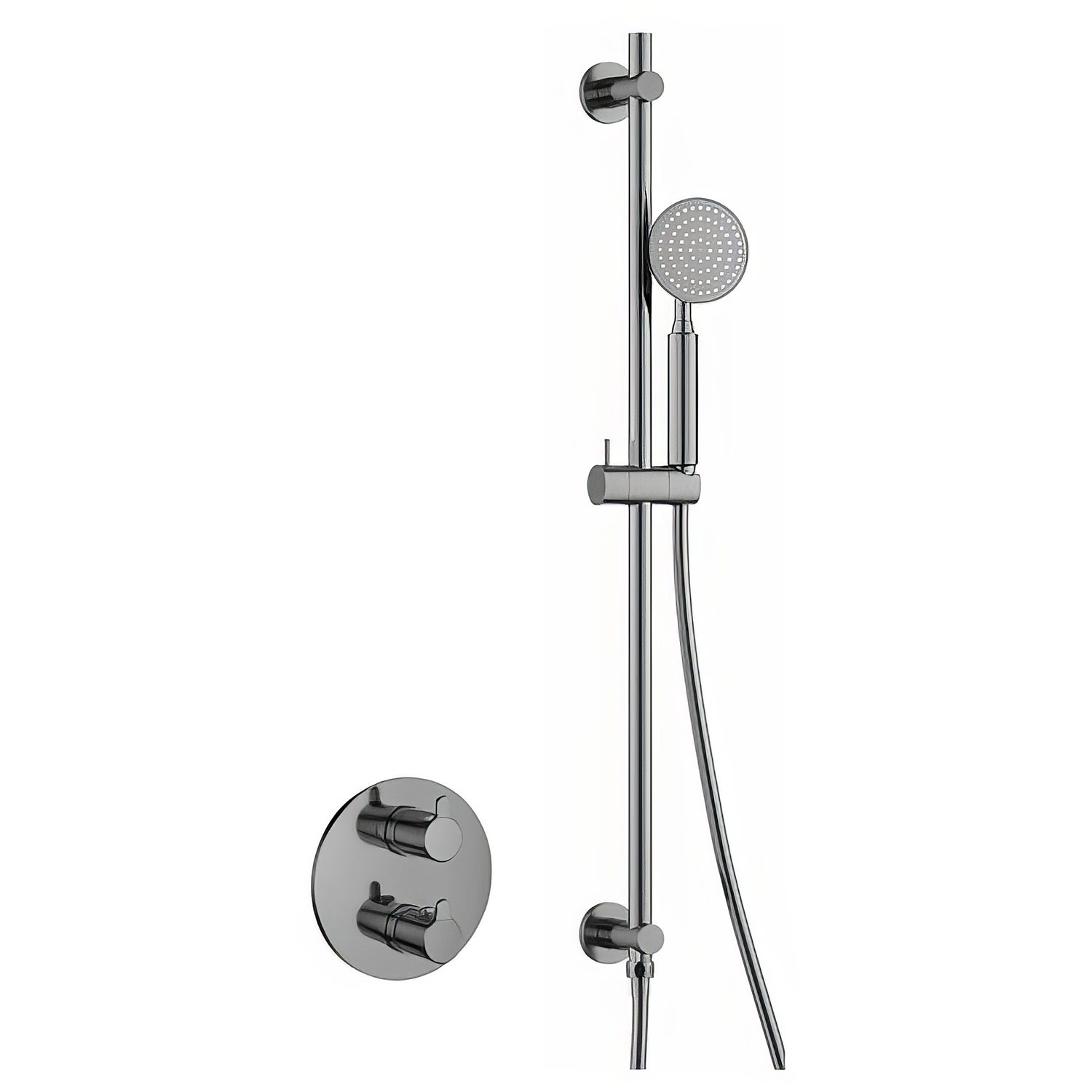 Flova Moonlight Concealed Round Thermostatic Shower Valve with Slider Rail and Hand Shower