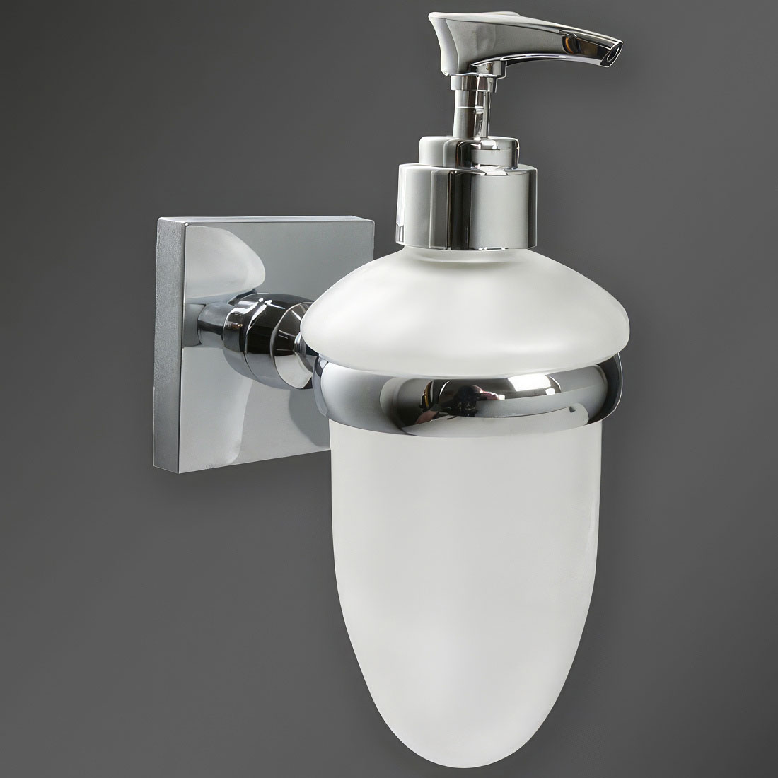 Miller Cube Wall Mounted Frosted Glass Lotion Bottle with Chrome Holder.