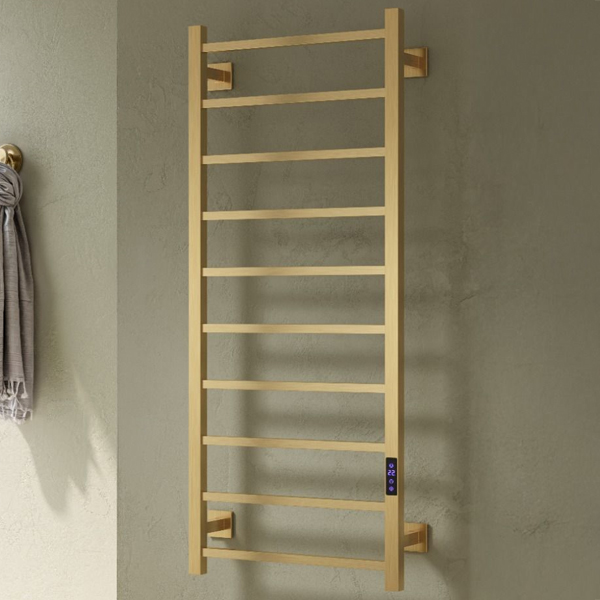 Reina Velino Square Tube Dry Electric Towel Rail - Stainless Steel - 500mm Wide.