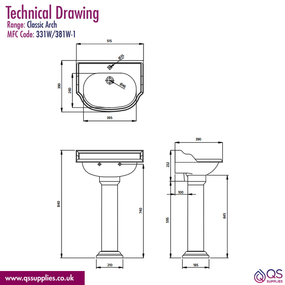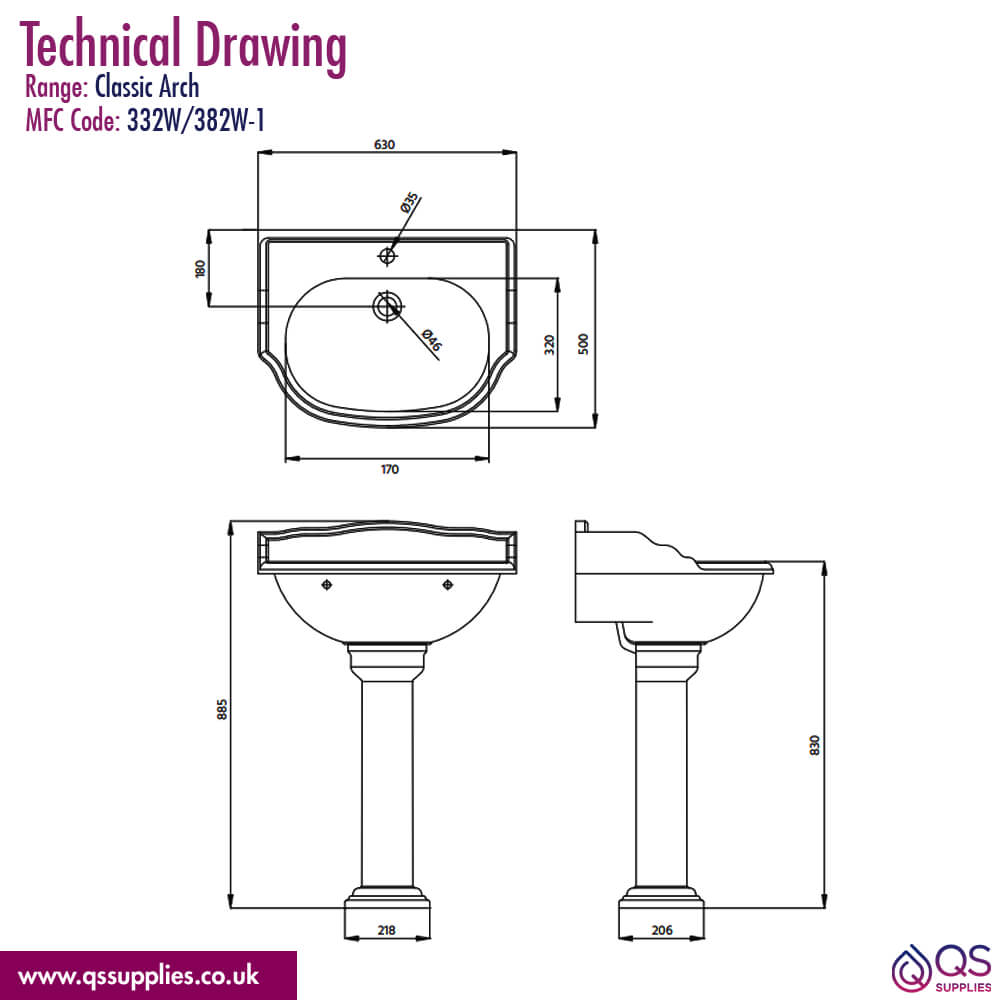 • Details of 600 x 490mm Basin: