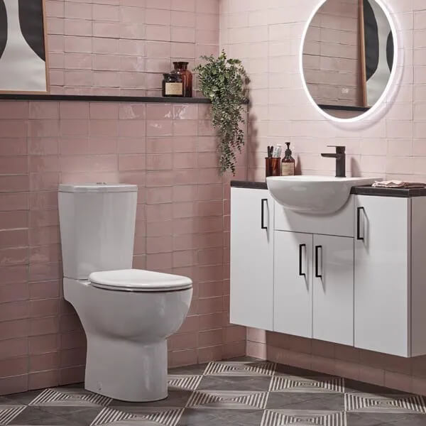 Open-back toilets are a type of close-coupled toilet with a cistern attached to the back of the toilet, creating one single unit. In the open-back model, there is a space at the back between the toilet bowl and the wall to access pipework at the back, while the closed back does not have a gap.