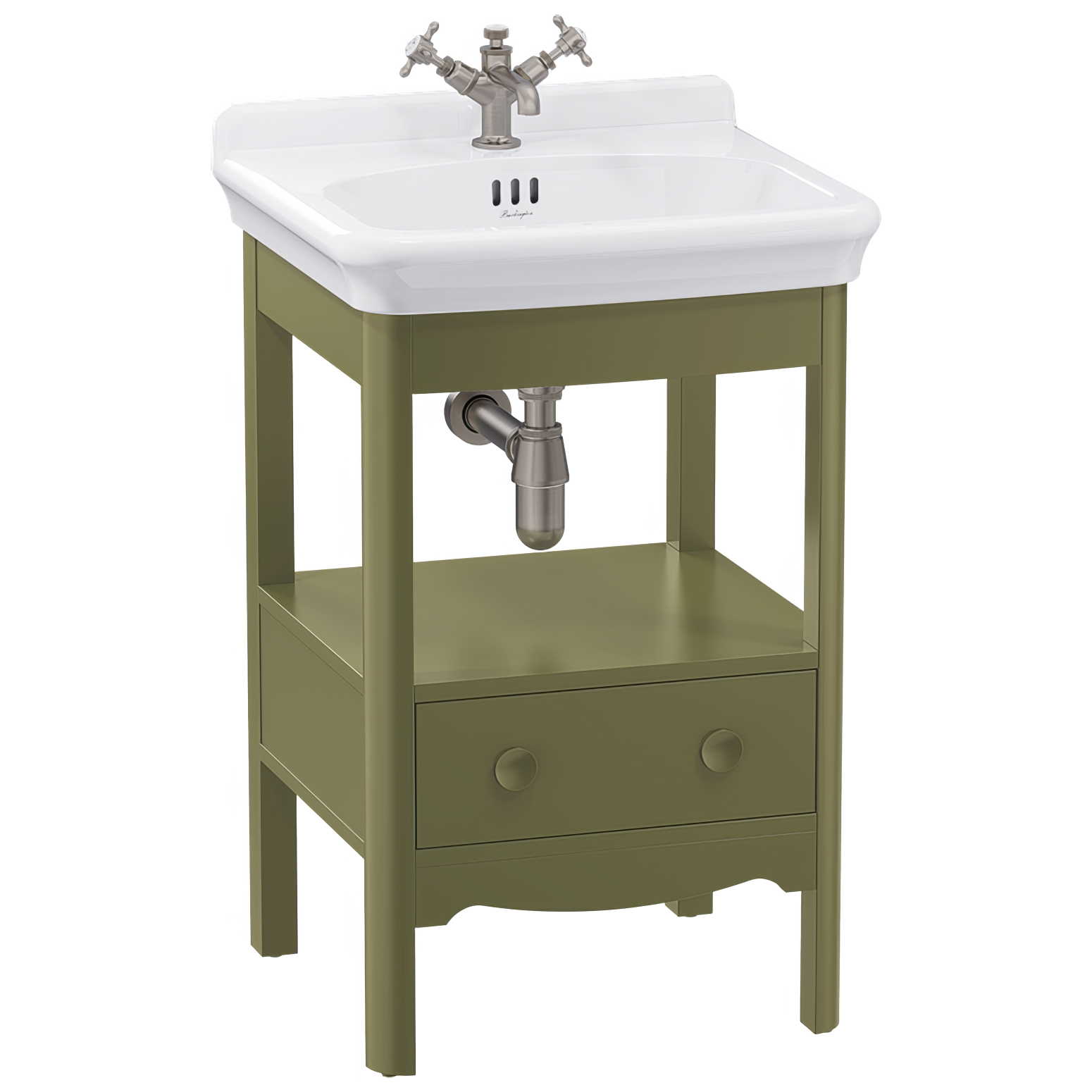 Burlington Guild Floorstanding Traditional Open Shelf Vanity Unit with Basin and Handles - 1 Drawer