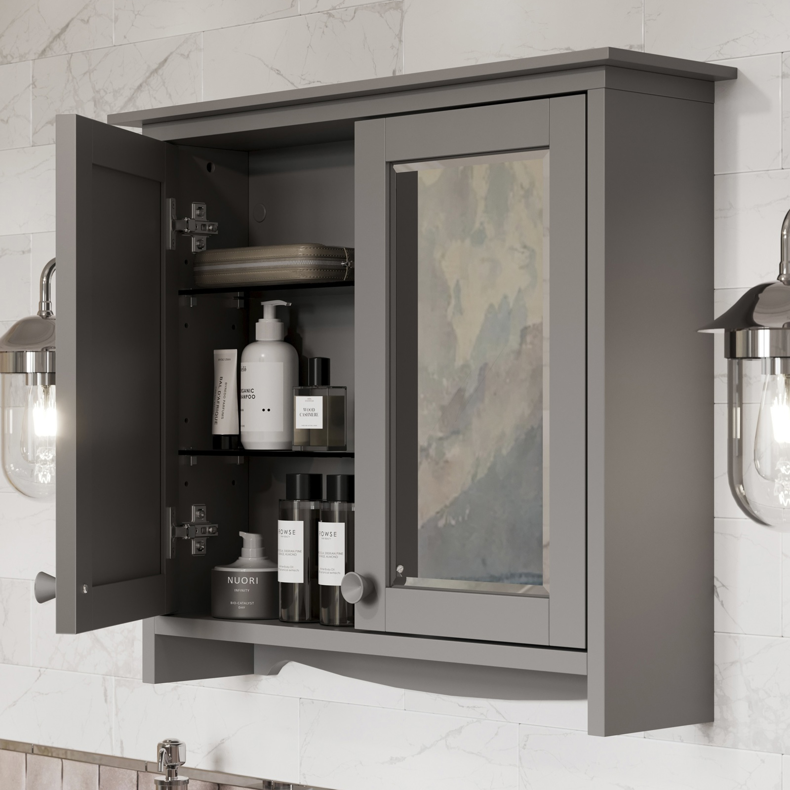 Burlington Guild Wall Hung Traditional Mirror Cabinet with Handles - 2 Door - 650 x 570mm