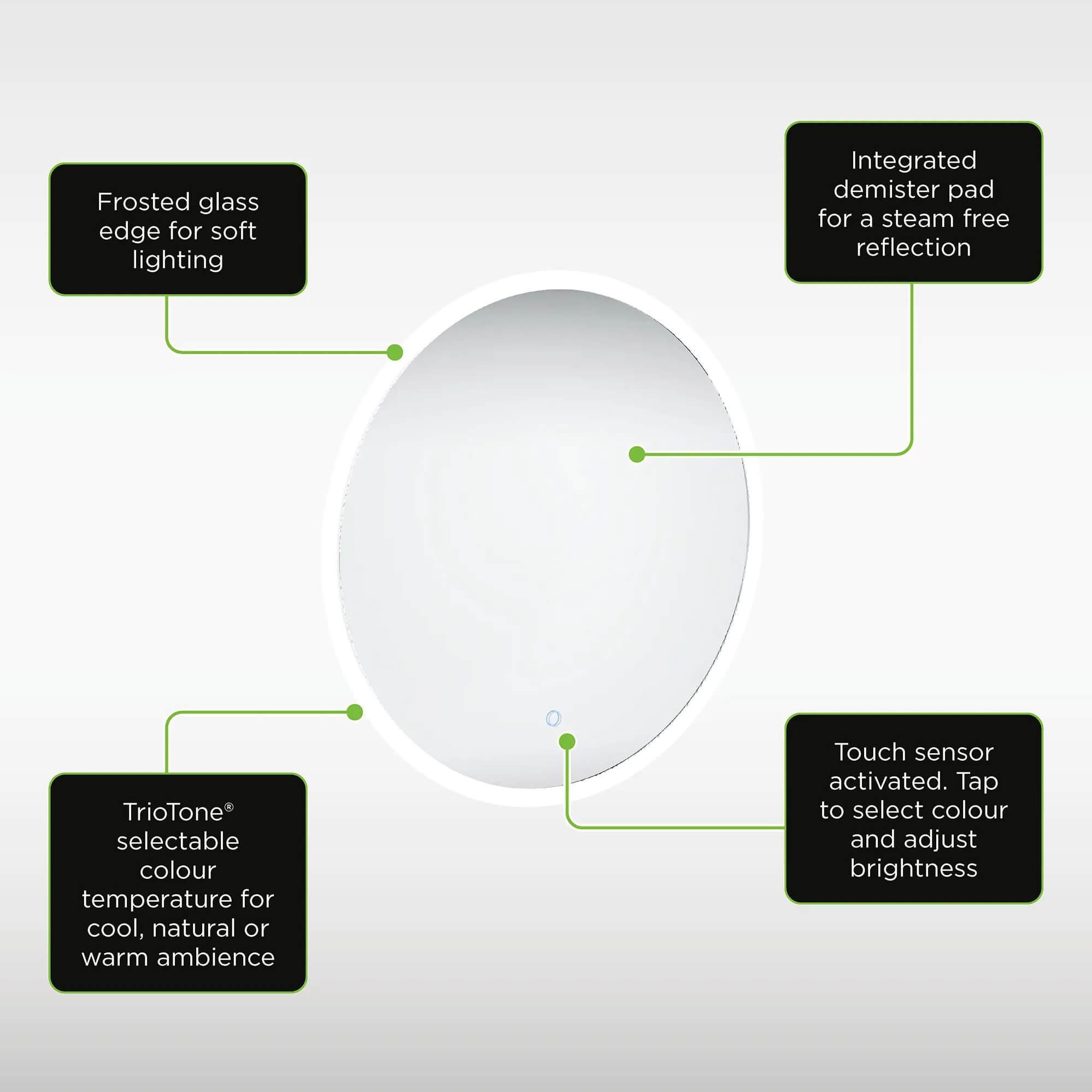 Sensio Celestia Round LED Borderlit Mirror with Demister Pad - 600 x 600mm