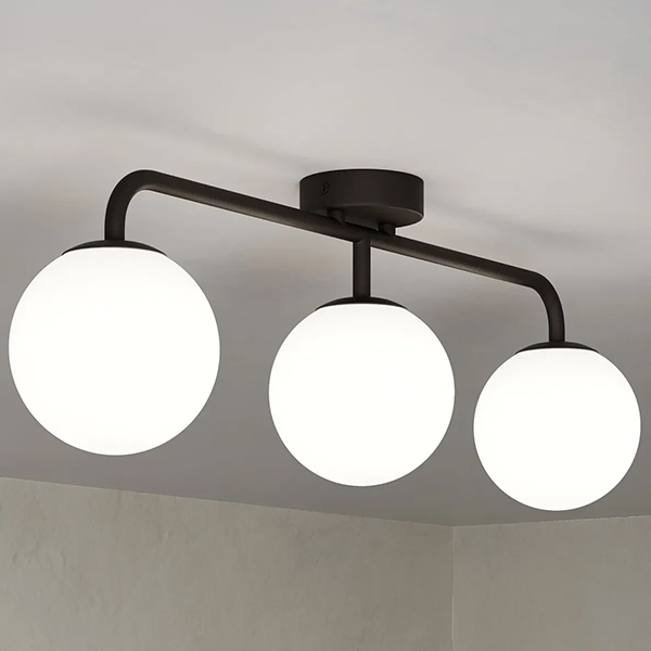 • Modern Design: Three Globe-Shaped Shades Evenly Spaced Along a Horizontal bar for Balanced Illumination