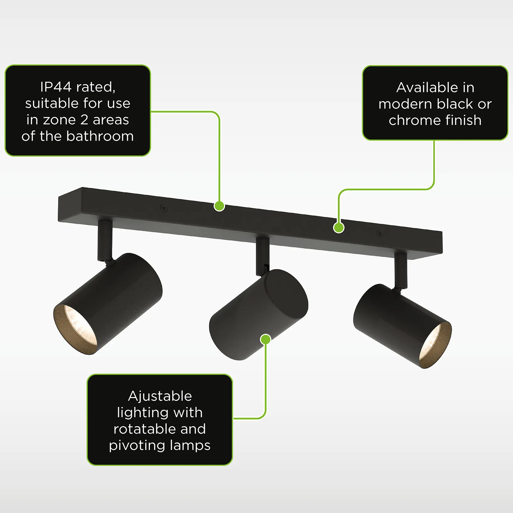 • Adjustable Spotlights: Each of the Three Cylindrical Heads can be Independently Angled to Direct Light Where Needed