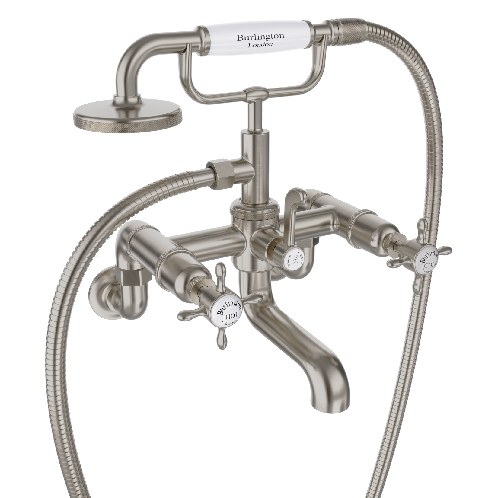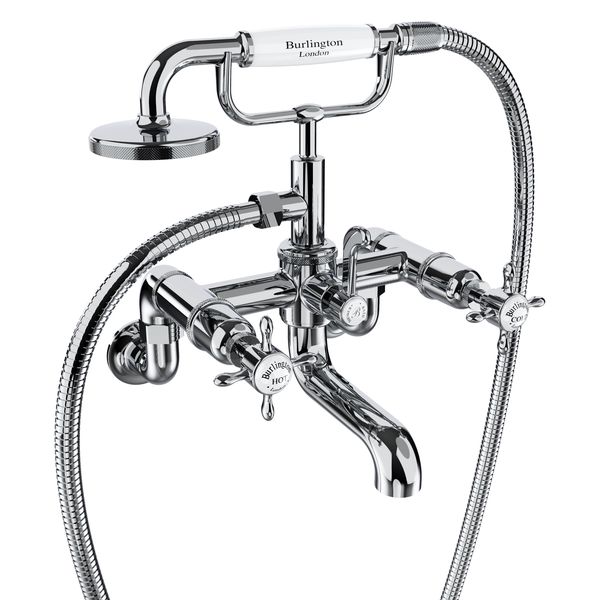 Burlington Guild Traditional Bridge Bath Mixer Tap with Shower Handset - Crosshead - Wall Mounted