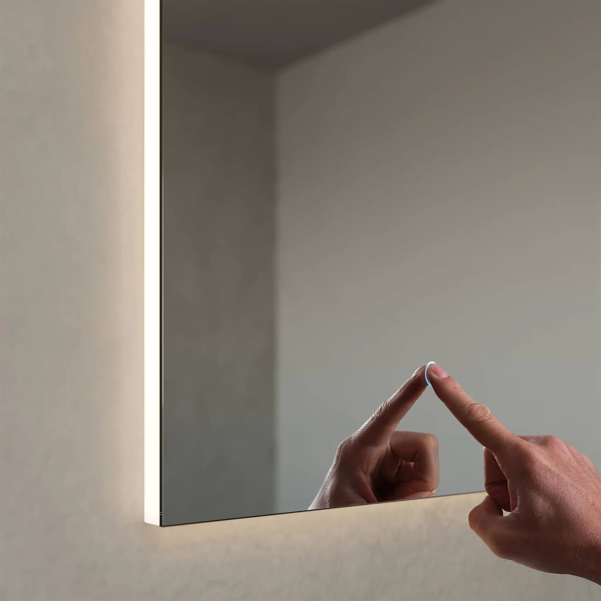 Touch sensors are incorporated into the mirror surface and activate advanced lighting features by touch.