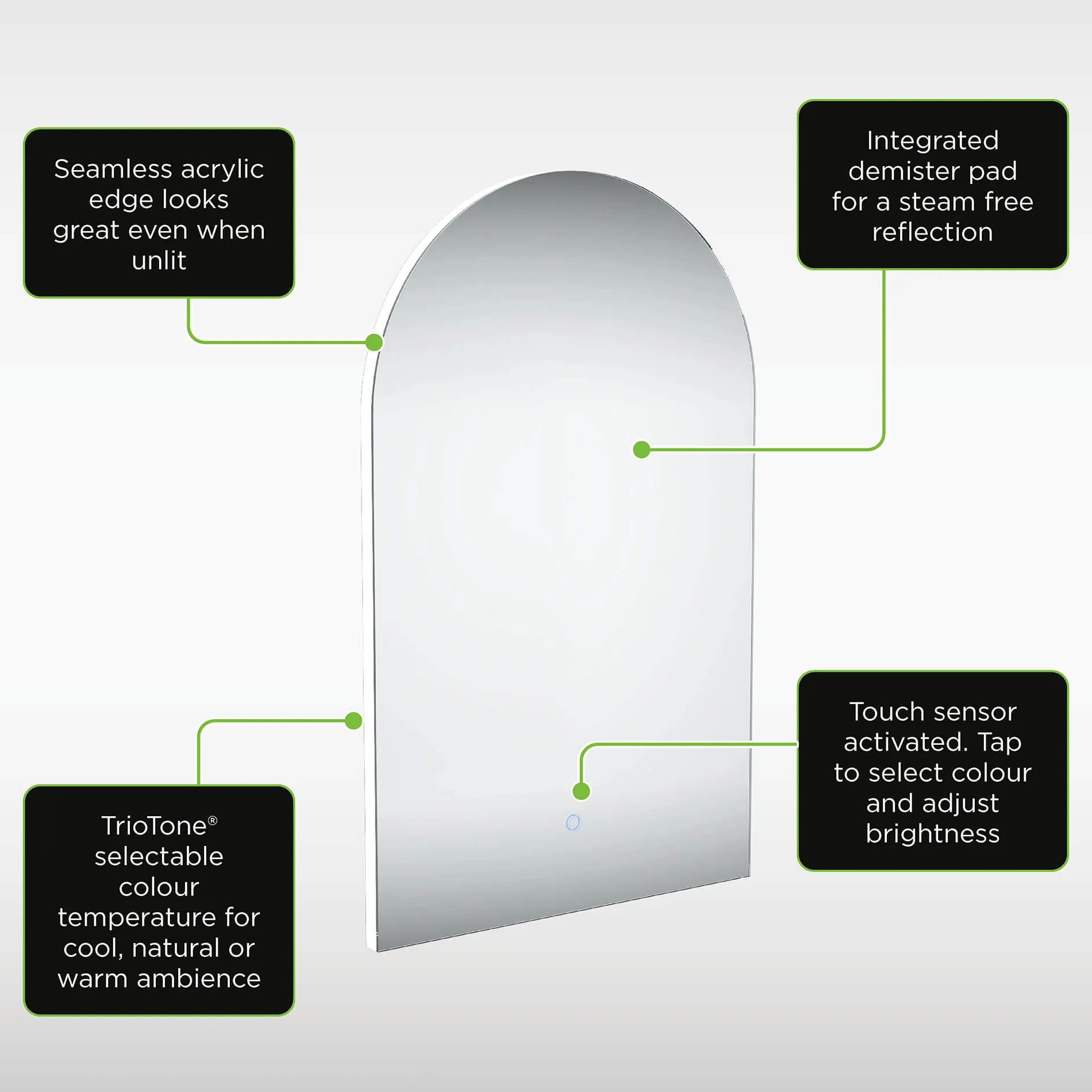 Sensio Luna Arch Backlit LED Mirror with Demister Pad - 500 x 800mm