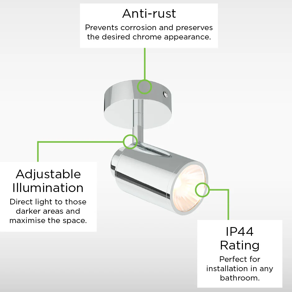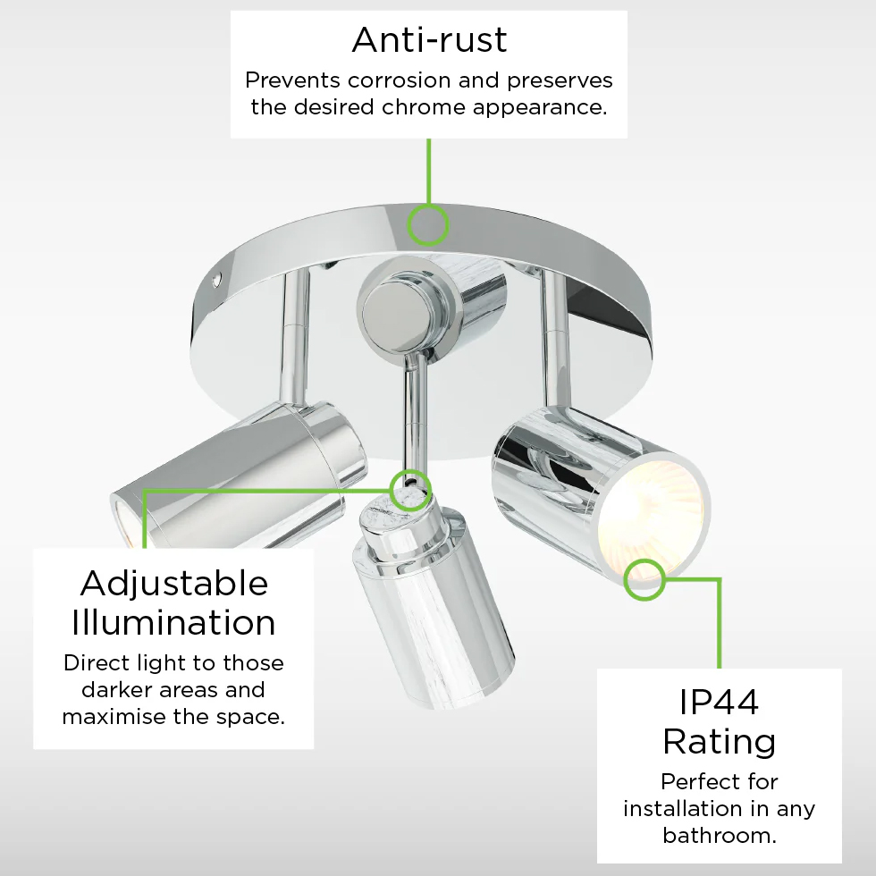 Sensio Lukso Chrome Circular Bathroom Spotlight - Single or Triple