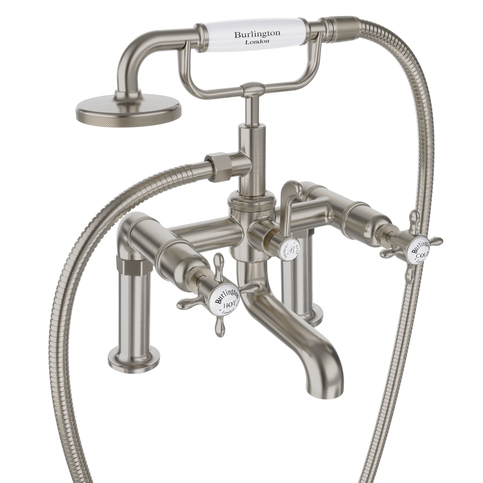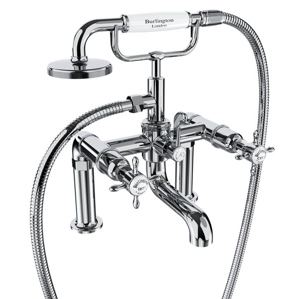 Burlington Guild Traditional Bridge Bath Mixer Tap with Shower Handset and Hose - Crosshead - Deck Mounted