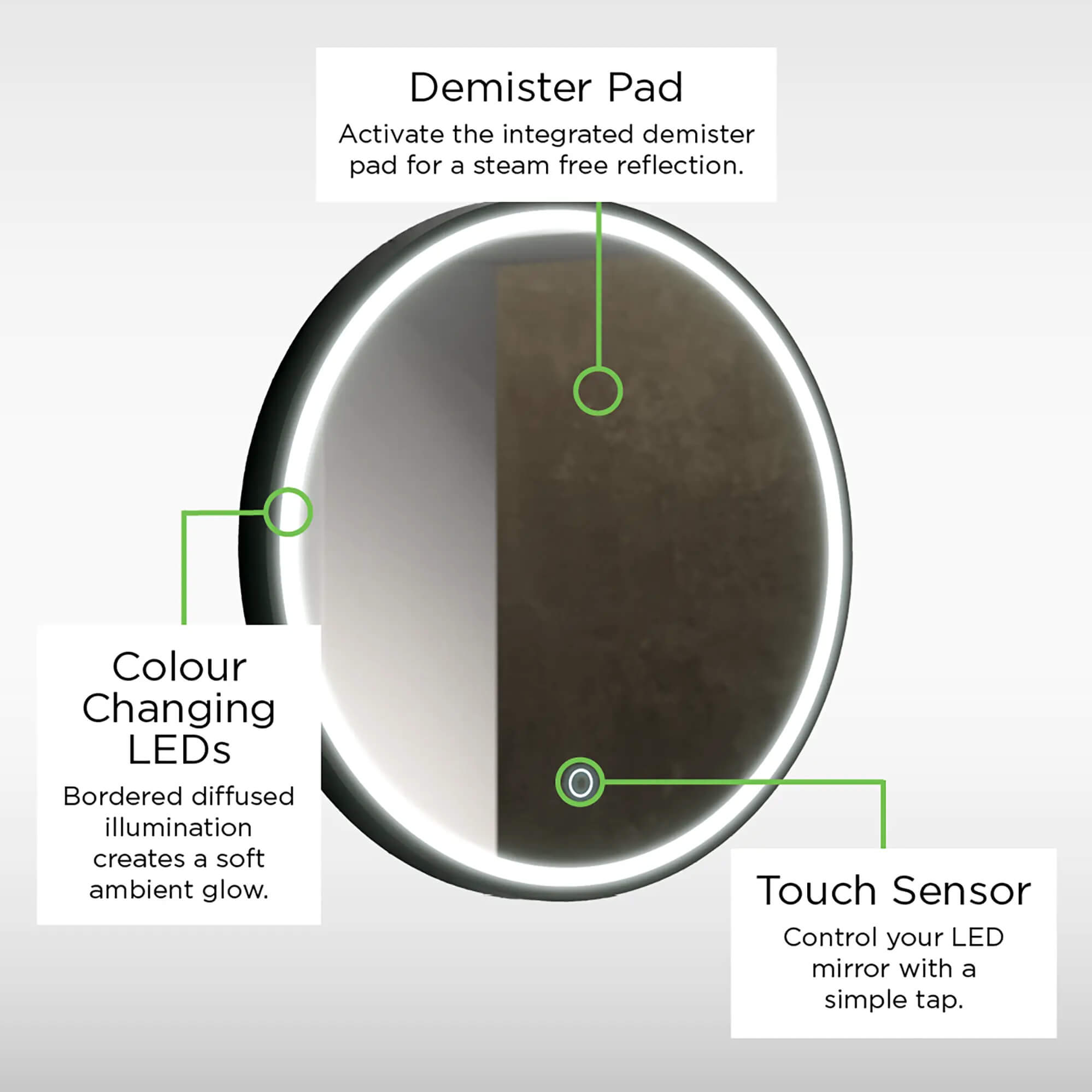 Sensio Frontier Round Frontlit LED Mirror with Demister Pad