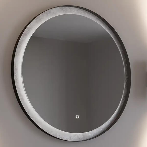 Sensio Hebe Round Backlit LED Mirror with Demister Pad - 600 x 900mm - Black and Silver Frame
