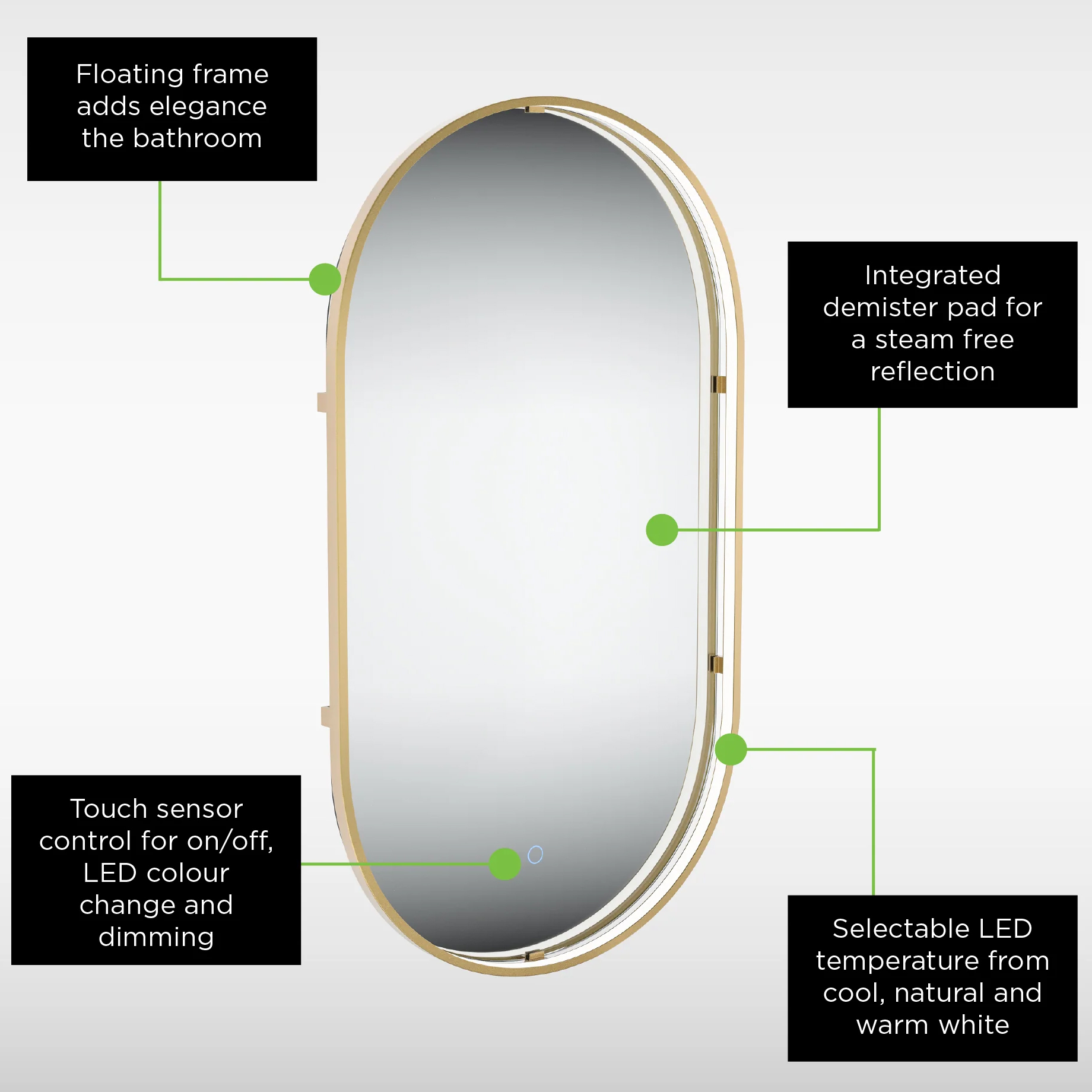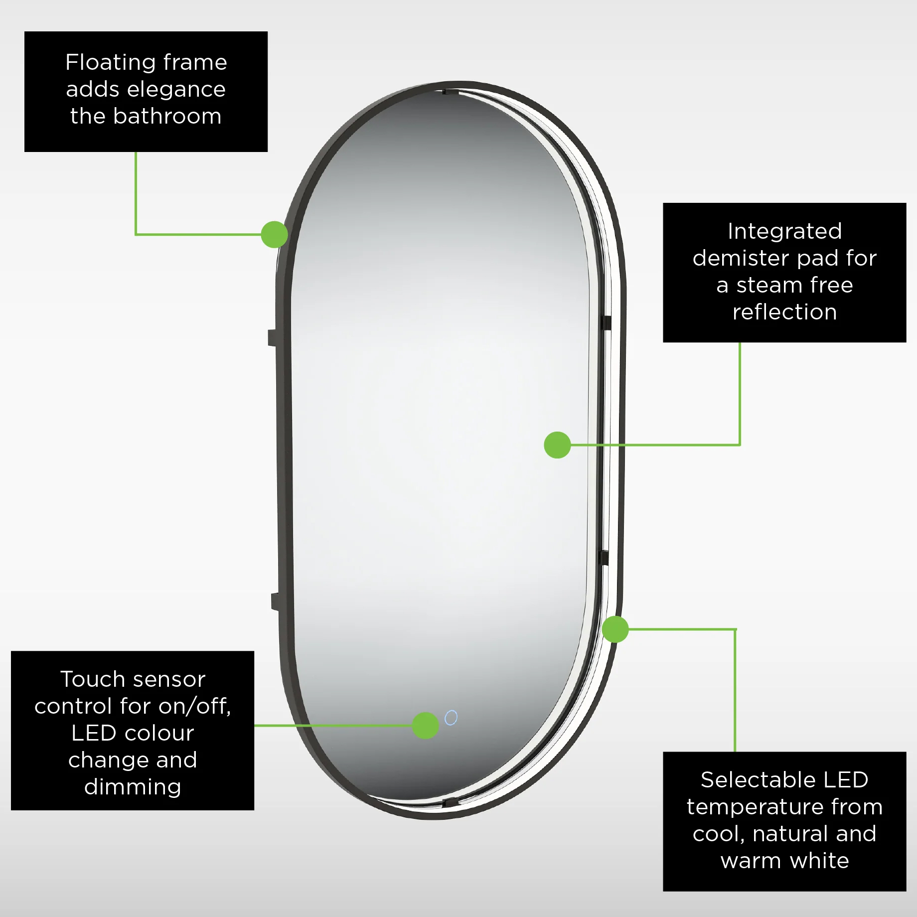 Sensio Aspect Pill TrioTone Frontlit LED Illuminated Mirror with Demister Pad