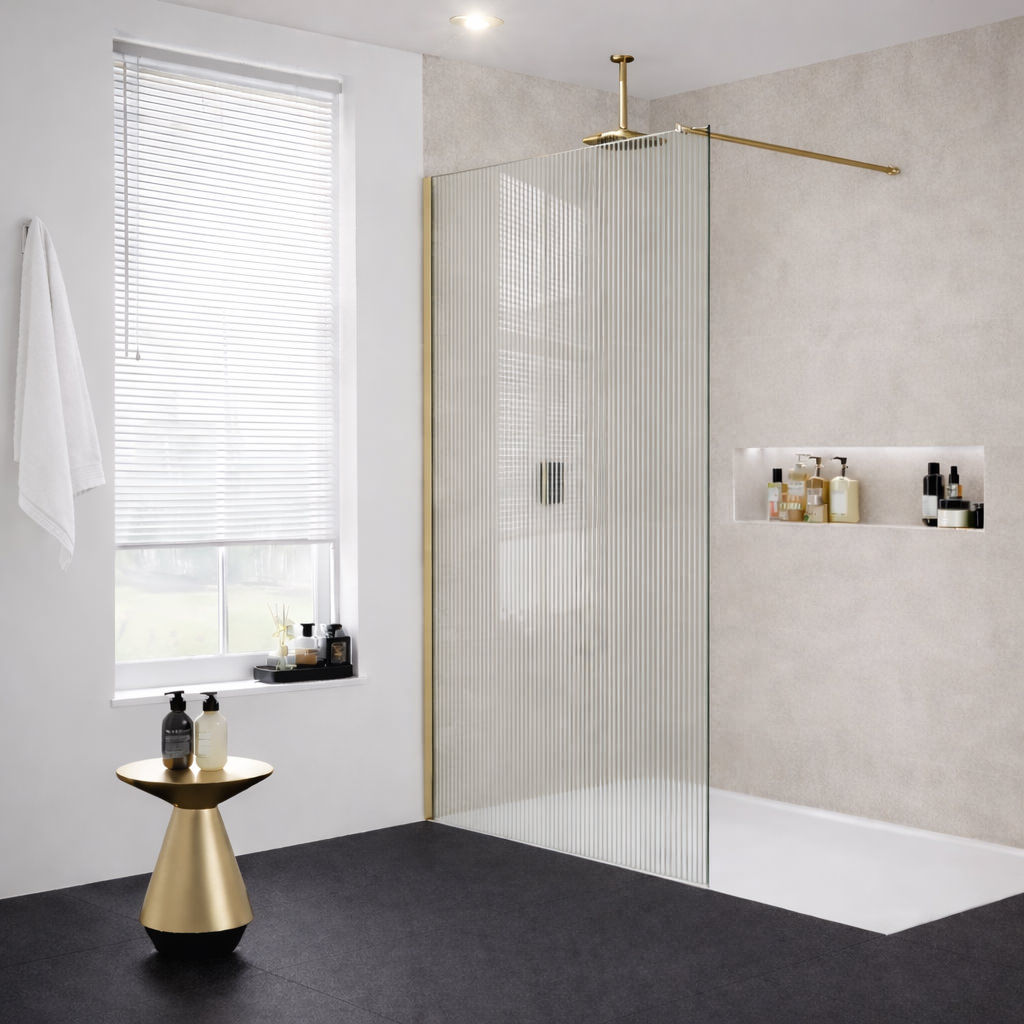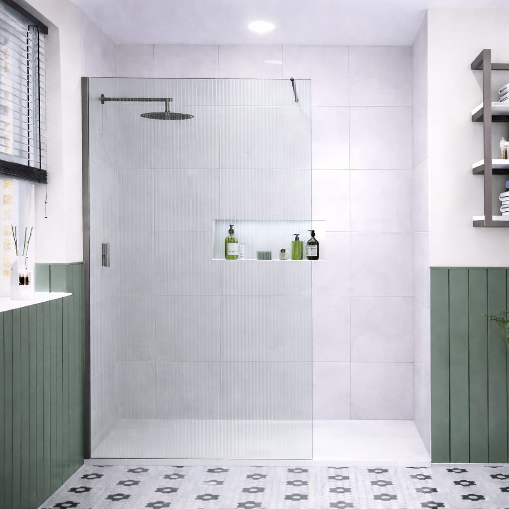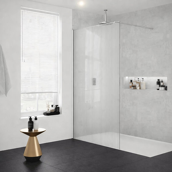 Merlyn Fluted Glass Frameless Walk In Wetroom Shower Screen with Rail - 2015mm High