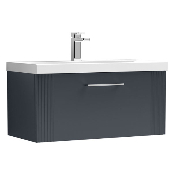 Nuie Deco Wall Hung Semi-Fluted Soft Black Vanity Unit with Handle - Ex-Display - 1 Drawer
