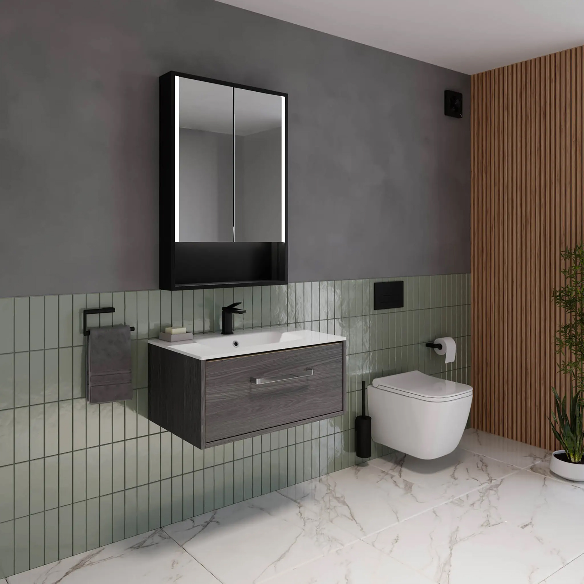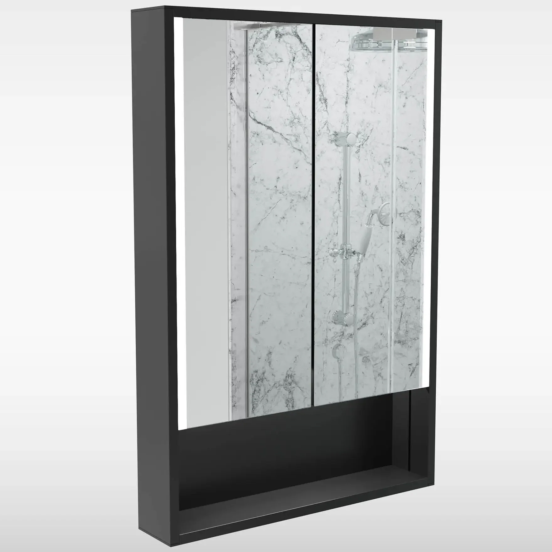 Sensio Sydney Aluminium Black Open Shelf LED Mirrored Cabinet - 600 x 900mm - 2 Door.