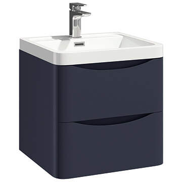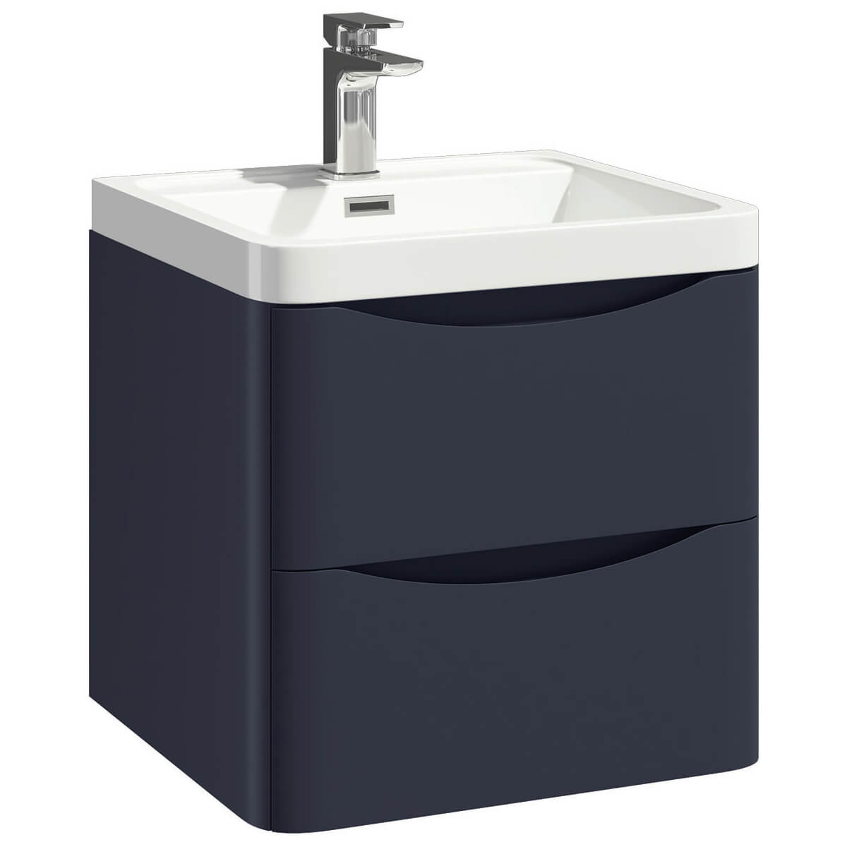 JM Bella Indigo Blue Wall Hung Vanity Unit - Handle-Less - 2 Drawers - 600 x 450mm - Ex-Display